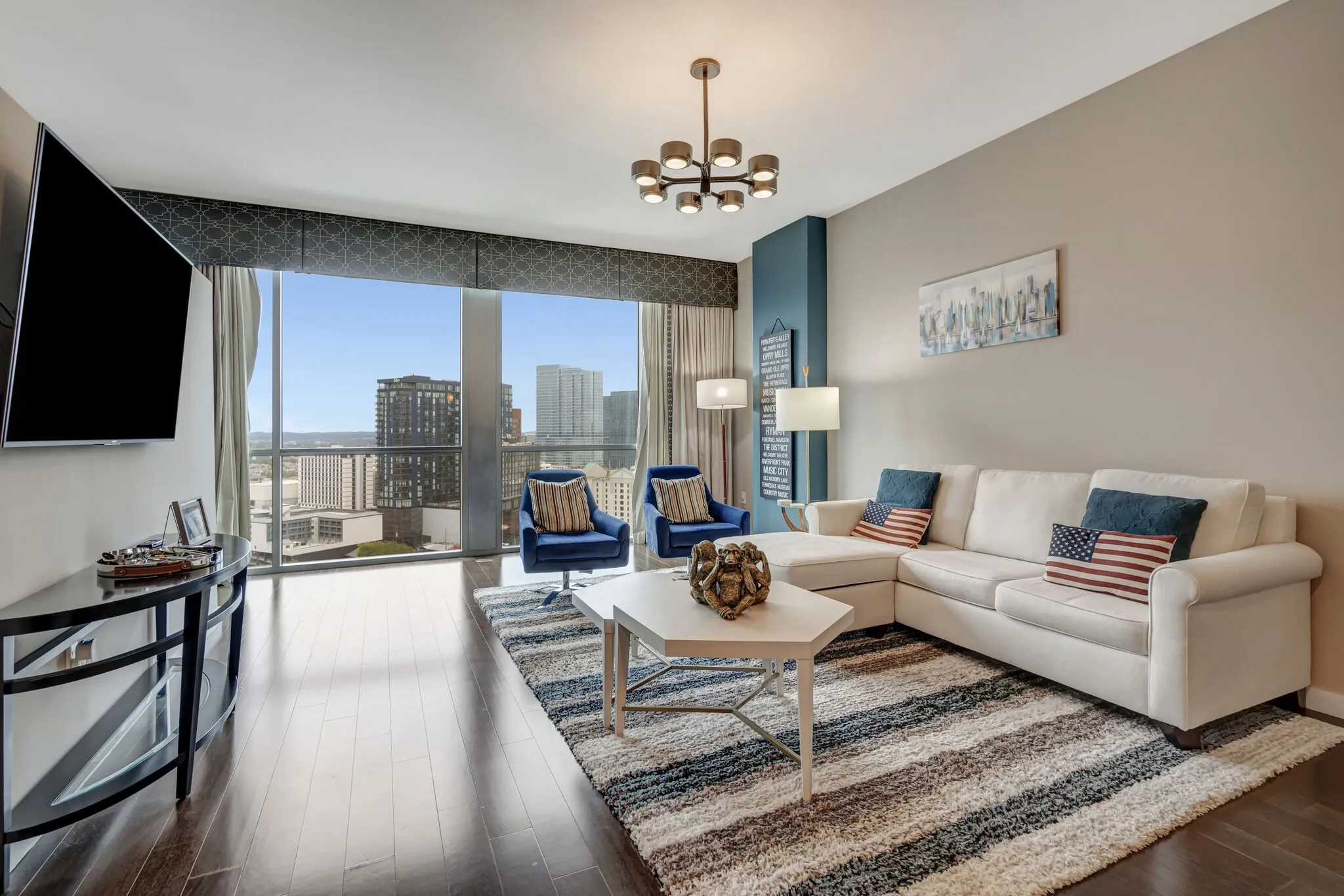 Immaculate FULLY FURNISHED condo in Nashville’s premier condo high-rise. Perfect Midtown location between Vanderbilt and Music Row. Includes access to all amenities including pool, fitness center w/ trainers, dog park, and gated owners park. Wireless internet, Directv, and one assigned parking space included. The property can’t be rented unfurnished and rent includes one cleaning per month.