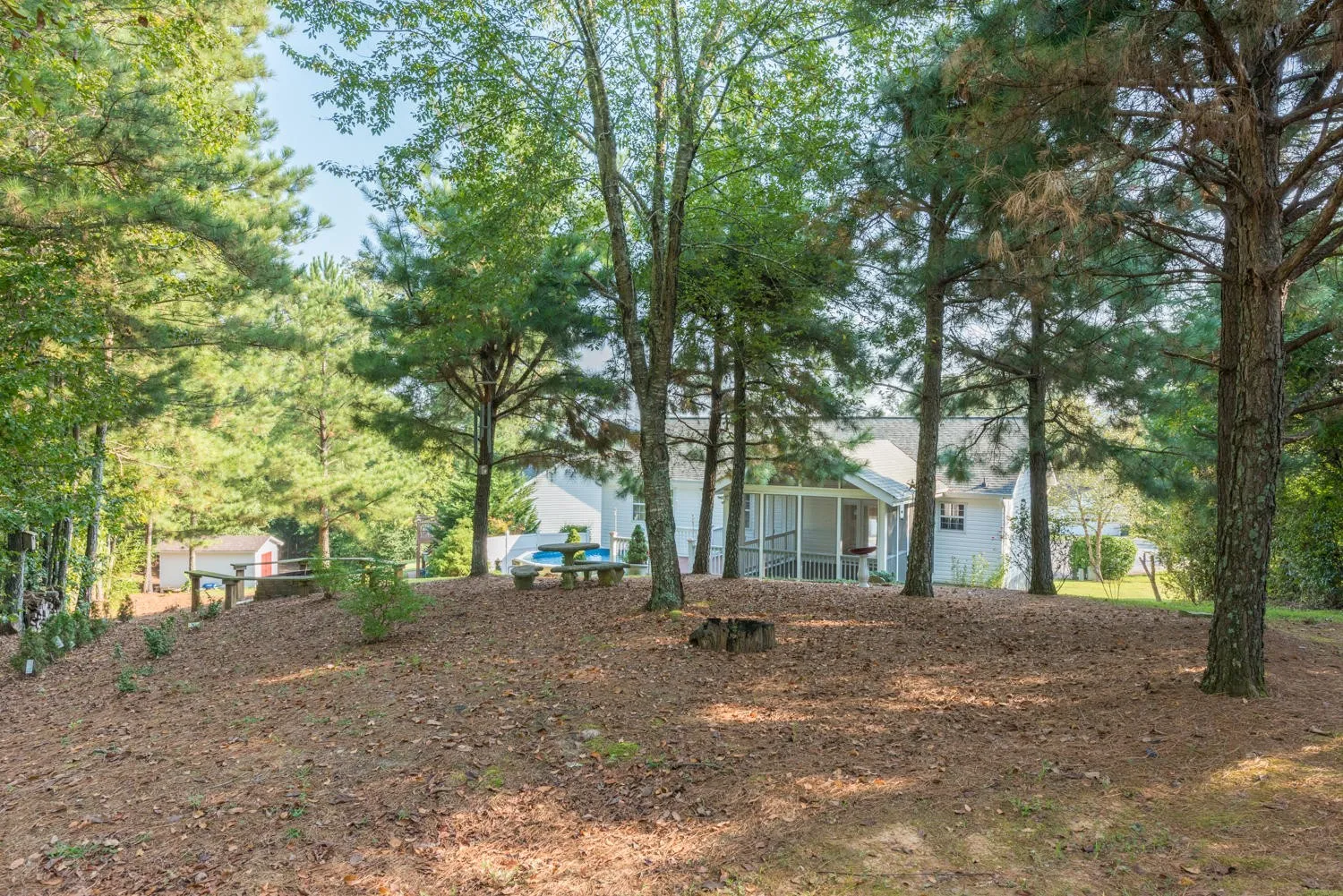 Convenient location yet quiet cul-de-sac and extra private back yard oasis! Enjoy the benefits of the meticulous homeowners. Updates include hardwood flooring throughout all bedrooms, living room and hallway * walk in tile shower in completely renovated master bathroom * granite counters, tile backsplash, under counter lighting and stainless appliances in the kitchen * tankless water heater plus a back up water heater * hvac 6 yrs old * roof 7yrs old. The den is enormous! The double garage is extra deep which is great for additional storage or a workshop! You will want to spend your spare time outside on the covered deck (custom vaulted ceiling), saltwater pool and firepit! Don’t forget about the 16×16 outbuilding with power! Schedule your appointment today!