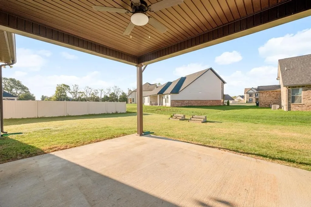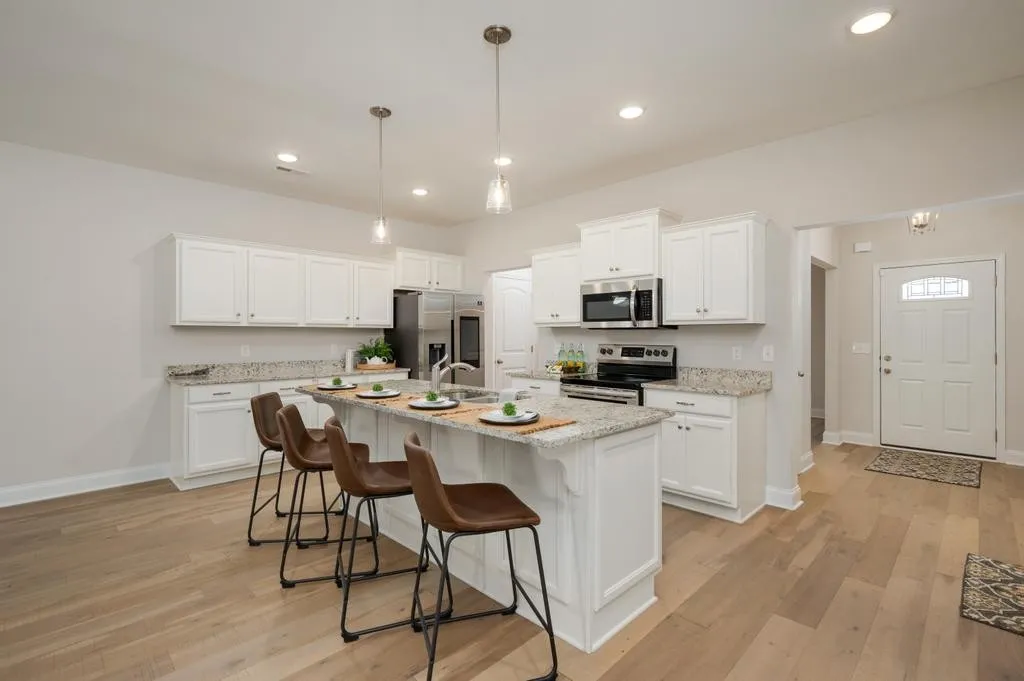Almost new home in beautiful Barfield Downs neighborhood which is around the corner from the Greenway Trailhead. This home looks brand new with its vaulted Living Room Ceilings which are open to the spacious Kitchen. Tons of cabinet space and 2 pantries. The Owner’s Bathroom is well situated with separate shower/tub and a private toilet room. Covered Back Patio and Community sidewalks. Smart Stainless Steel Refrigerator and Washer & Dryer all stay with home. Optional zoning for Barfield or Salem Elementary.