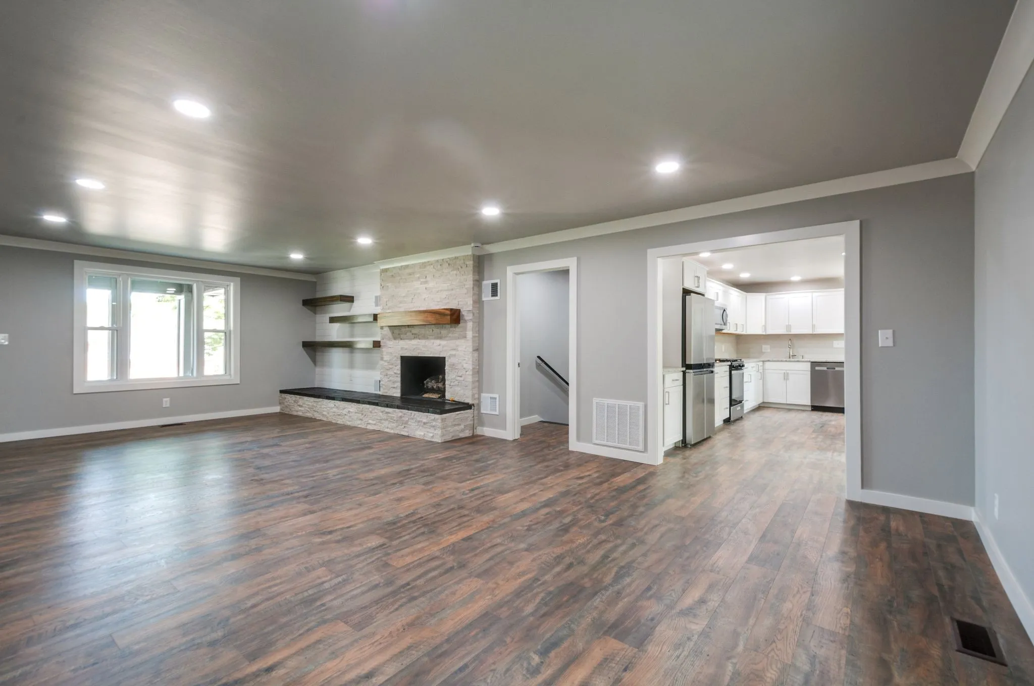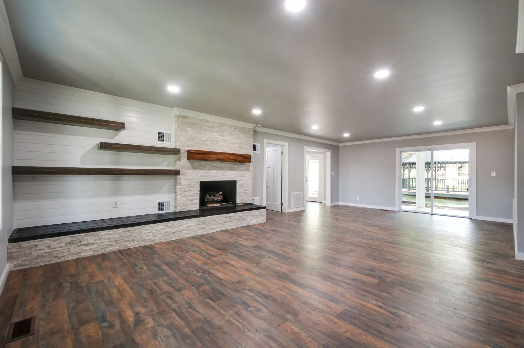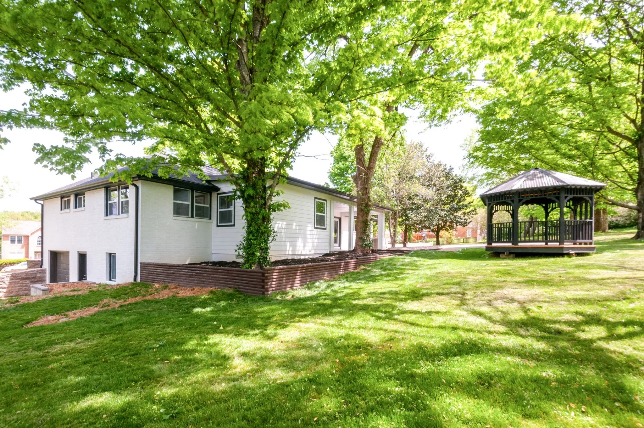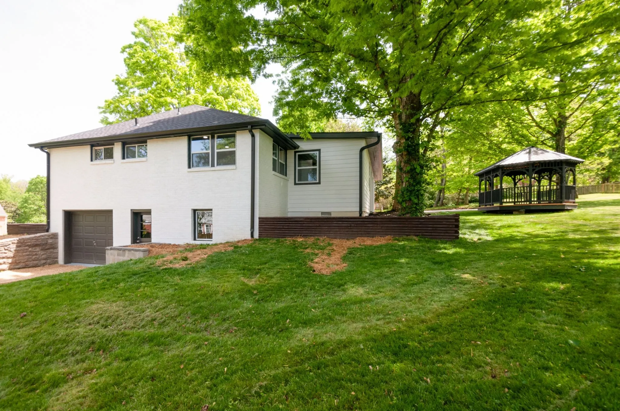 Fully remodeled brick home on nearly an acre in a great neighborhood with community pool. Huge garage/shop downstairs or use to add square footage to the home, over 1500 sq ft of extra space. House is completely redone. New roof, new cabinets, slab counters, stainless steel appliances, new trim and doors, new hard surface flooring throughout (no carpet), freshly painted inside and out. Giant master bedroom with walk in closet and beautiful private bath with an enormous tile shower. Covered patio and covered porch plus a gazebo for enjoying this huge lot.