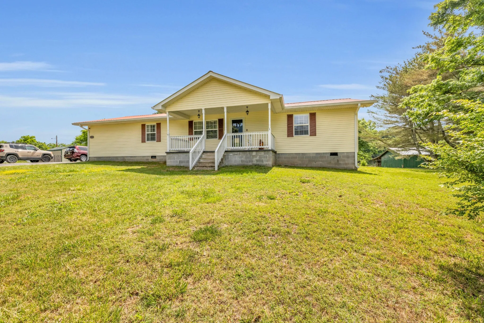 Looking for one level living in a beautiful setting? This home has gorgeous mountan view. Sellers have completed many upgrades throughout the home. It offers lots of areas for family/friends to gather and to host parties. It has a master bedroom at each end of the home. Appliances remain including the deep freezer, washer, dryer. So much outdoor space to enjoy. Garden space galore! Relax on your front porch and watch hang gliders on the mountain top. Relax or grill out on your back deck. Call to see this one quickly before it’s sold! Buyers to verify anything of concern including but not limited to all info on the mls listing, square footage, schools, etc. Deck sizes: Front deck: 20′ Wide x 8′ deep (Approx)