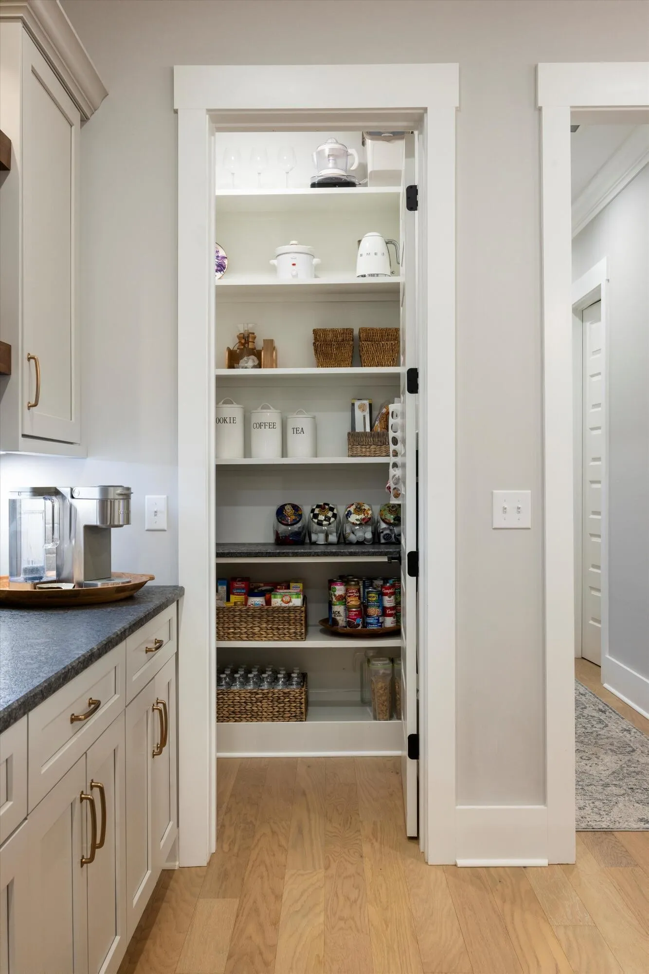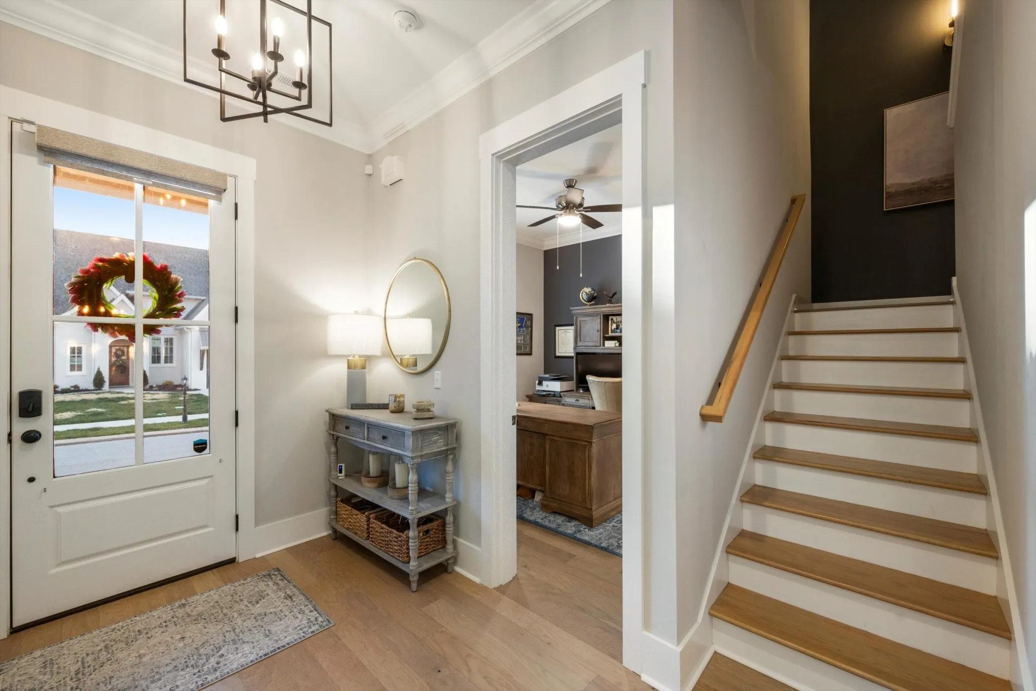 Don’t miss out on this stunning home spanning 2441 square feet, boasting 3 bedrooms plus an office on the main level. Step into luxury with 10 ft. ceilings and 8 ft. doors on the main level. The kitchen is a chef’s dream with ample custom cabinets, open shelving, a beautifully tiled backsplash, and a generously sized pantry. Cozy up by the fireplace in the living area adorned with hardwood floors. Relax on the covered front porch or side patio. This home is truly a gem, with custom touches throughout including built-out closets, fresh paint, and an additional fireplace in the upstairs living area. The seller has spared no expense, expanding the pantry, adding extra counter space, an extended patio, aluminum fence, and even a convenient additional parking pad. Make this your dream home today!