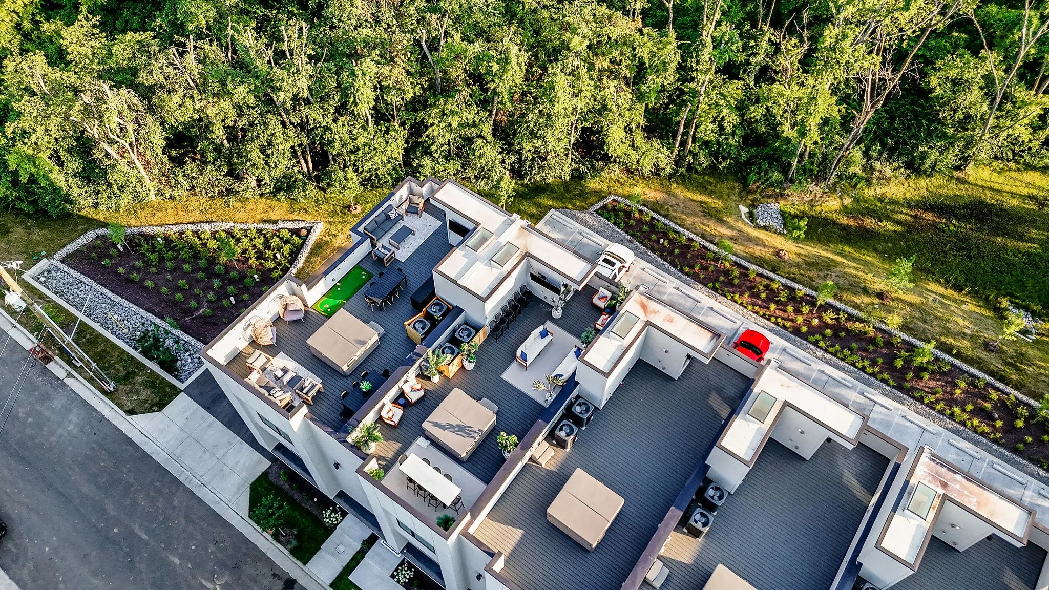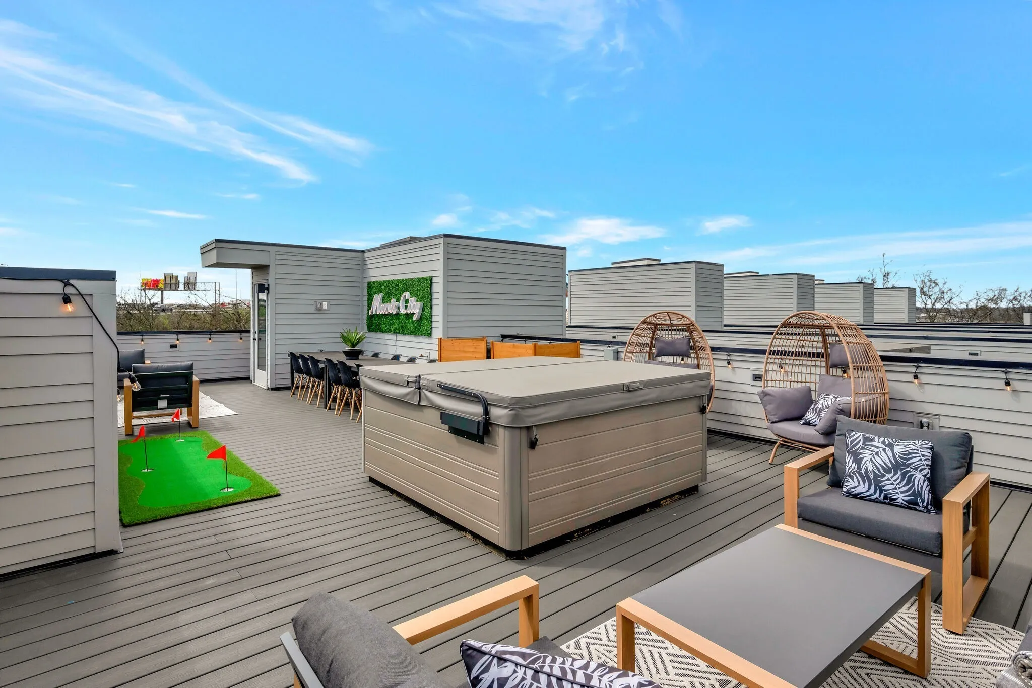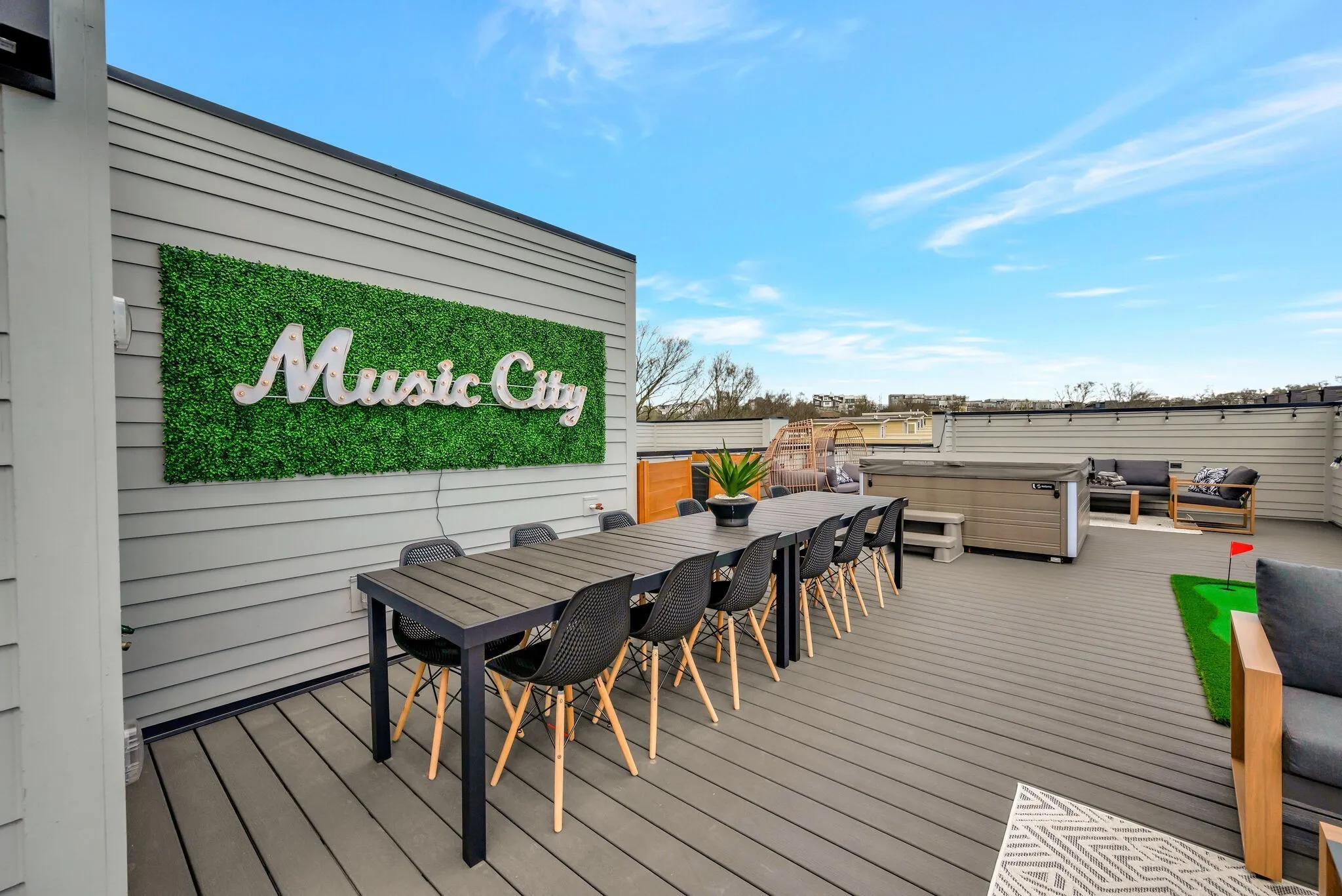 MODERN NON OWNER OCCUPIED AIRBNB – SHORT TERM RENTAL DEVELOPMENT WITH CITY VIEWS & ROOF TOP HOT TUBS! Our 6 units are designed from the ground up to maximize short-term rental income! Sunbathed California contemporary open floor plans with durable high-end details, these homes dazzle at every turn. Chef’s kitchen with duel fuel range, fabulous master suite with double head shower, quartz, LVT flooring, skylights in the stairwells, high efficiency appliances & HVAC, tankless water heater, LED lighting, 2 car garage and huge roof top decks with those skyline views & hot tubs. Optional outdoor kitchen available. Located directly adjacent to the River North development which is comprised of over $12 billion of new construction between the new Titans Stadium, Top Golf, East Bank redevelopment, Station East and Oracle HQ projects. Skyview is a fantastic VRBO and NOO STR investment opportunity that is zoned MUL!
