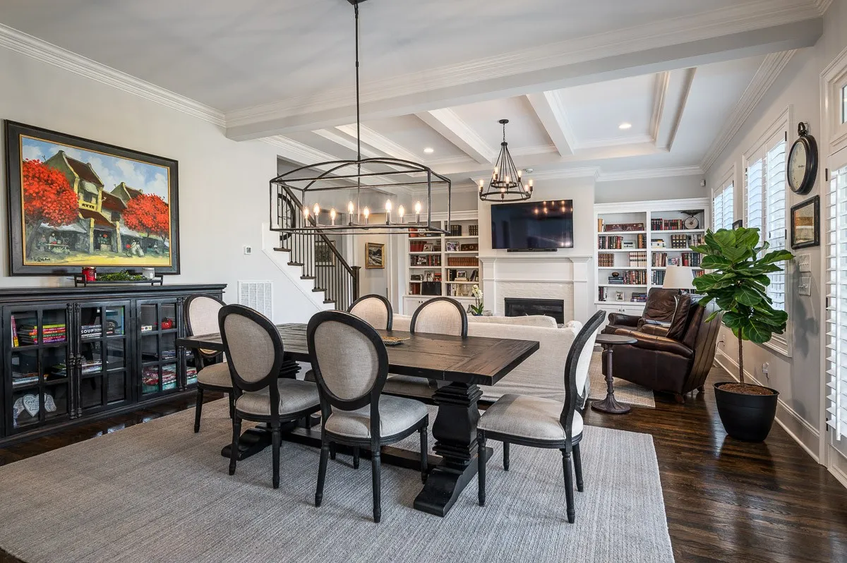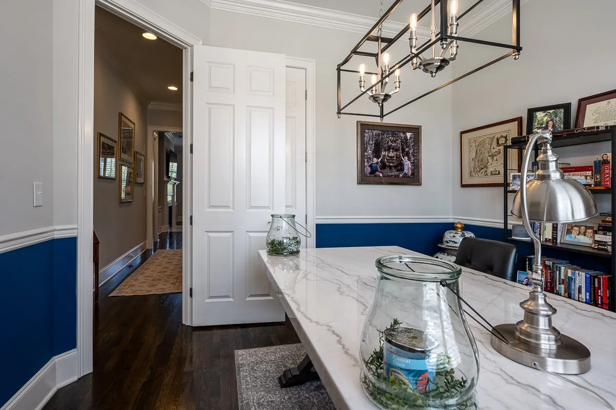Beautiful highly upgraded full brick home on a corner lot in desirable Echelon! Primary, guest bedroom and office on main floor. Open concept gourmet kitchen and great room with fireplace and built-ins and 12′ coffered ceiling that opens to covered screened in outdoor living. Beautiful finishes- stainless appliances, custom kitchen sink, quartz counters, hardwood floors, custom plantation shutters. Walk-in pantry. Beautifully landscaped with irrigation.