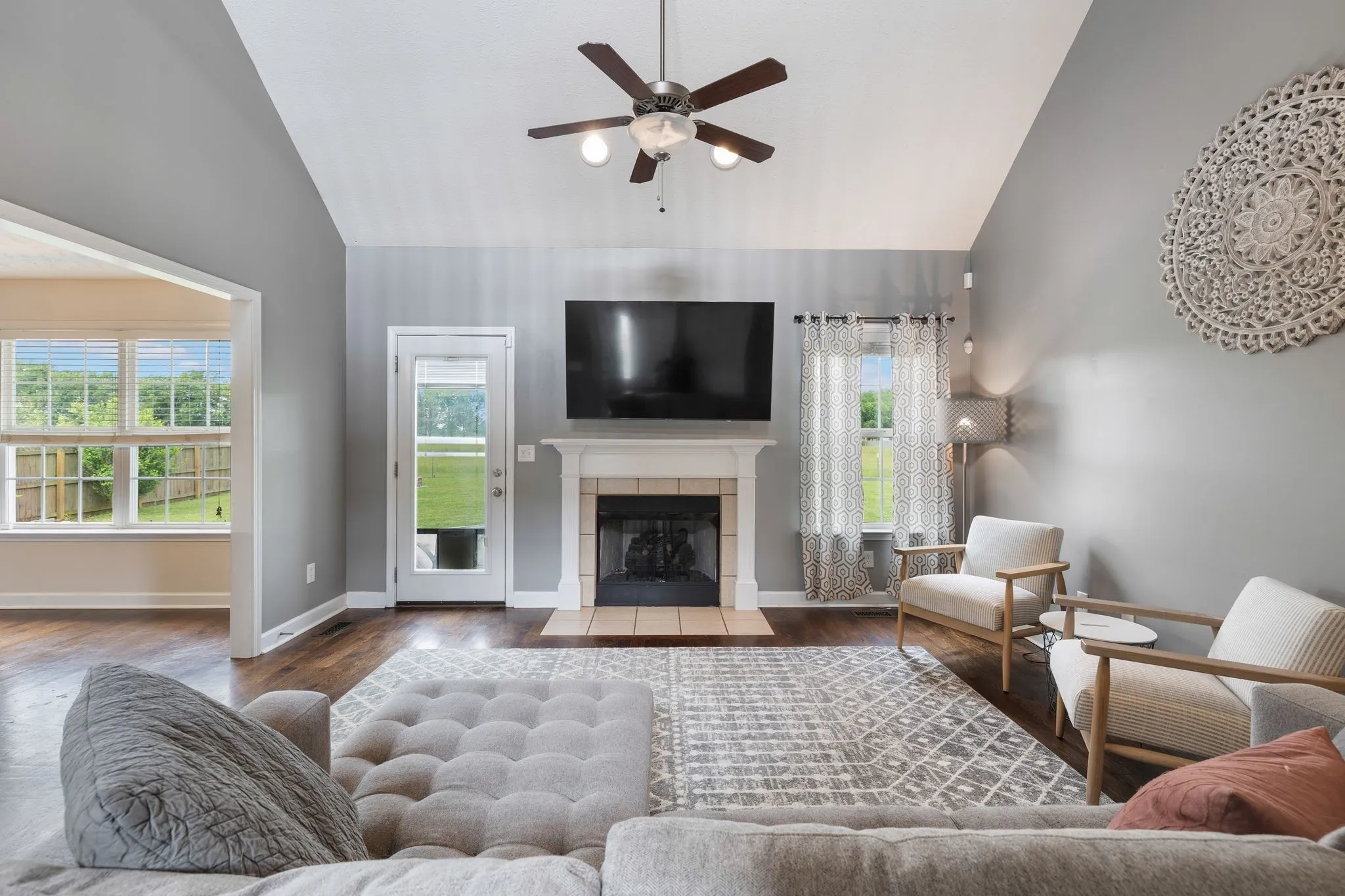Discover the perfect blend of country charm and city convenience with this all-brick home, ideally positioned on a spacious lot with no rear or side neighbors. The residence features hardwood floors throughout the main level, accentuated by an abundance of natural light and soaring vaulted ceilings. The kitchen and bathrooms have been tastefully updated with modern fixtures and finishes, adding a touch of contemporary elegance. The stunning downstairs primary bedroom offers a luxurious retreat, while the upper level boasts two additional bedrooms, a large bonus room, and ample storage space. Enjoy the tranquility of a private backyard with picturesque country views. This home provides a serene escape without compromising on accessibility.
