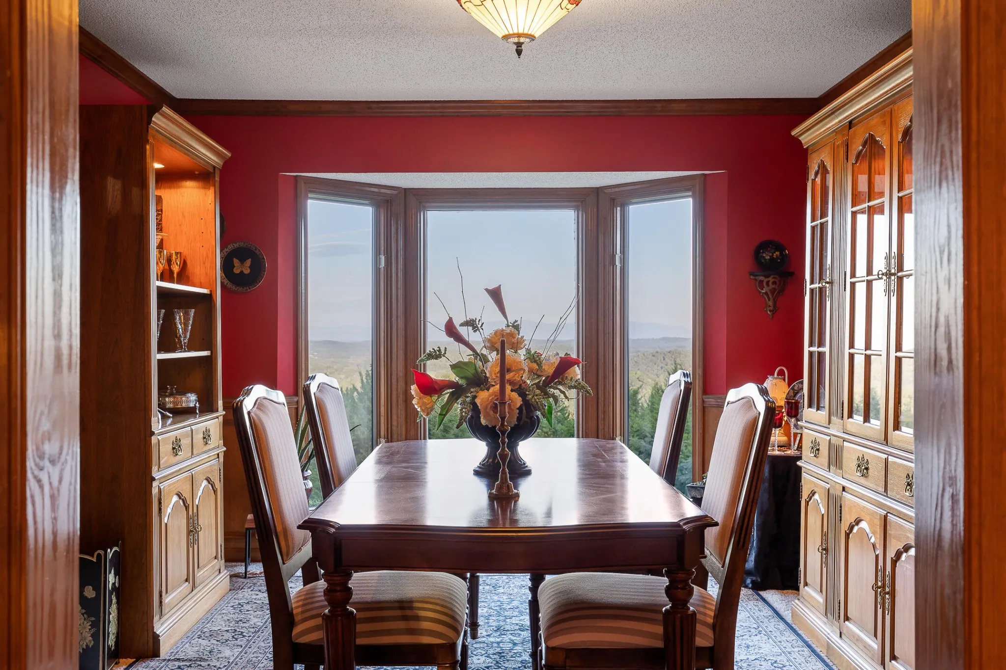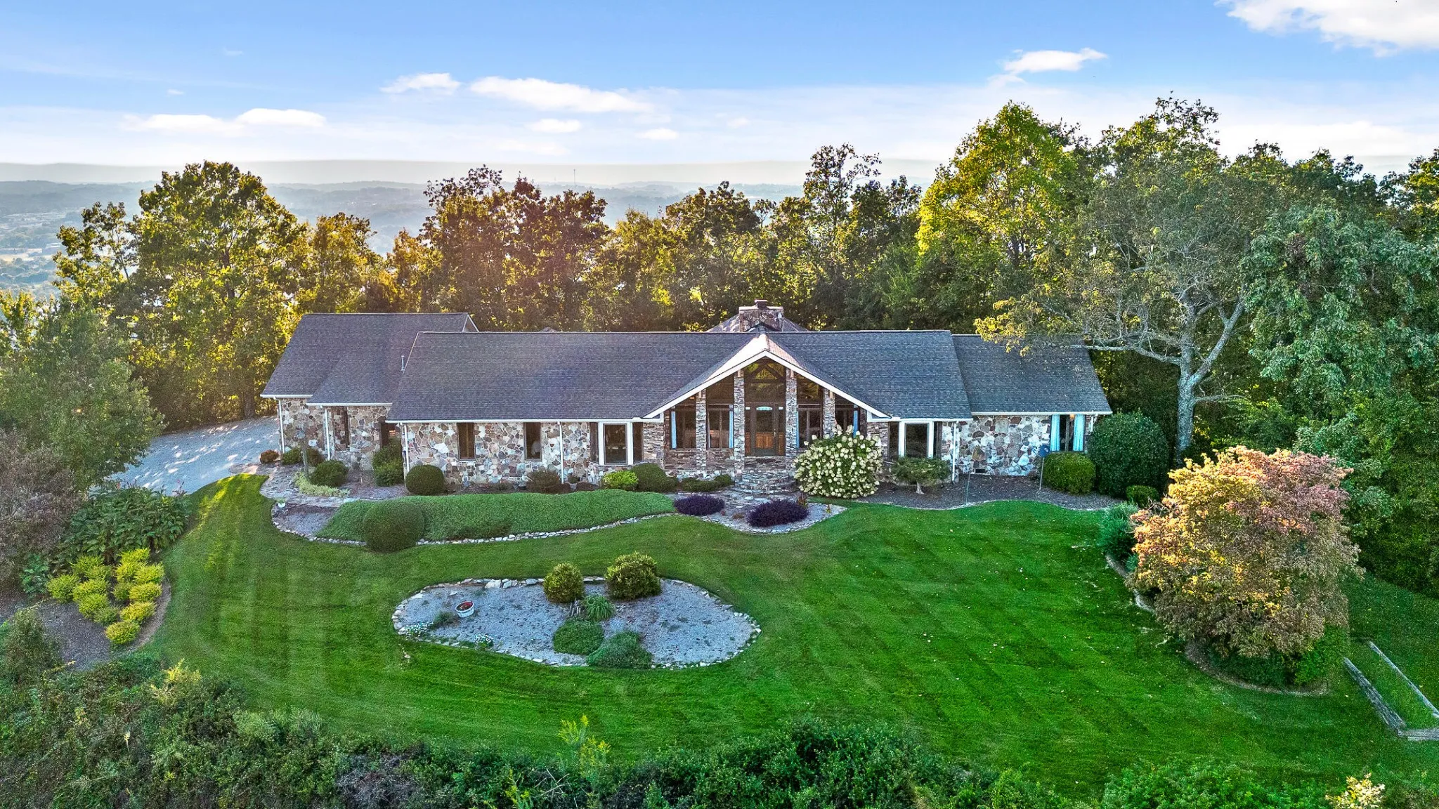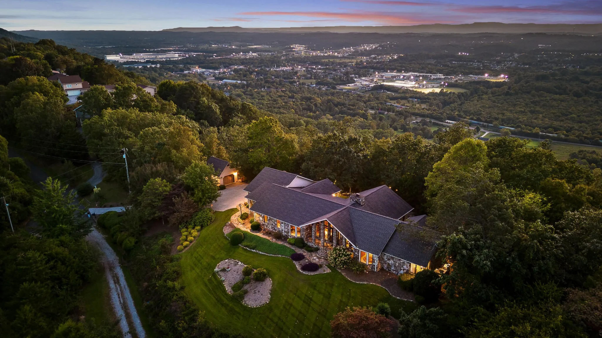 +"PublicRemarks": "RARE OPPORTUNITY TO LIVE ON 1.88 ACRERS AND HAVE STUNNING MOUNTAIN TOP VIEWS, (BOTH EAST AND WEST), CUSTOM BUILT, ONE LEVEL HOME, LOCATED MINUTES FROM DOWNTOWN RINGGOLD!! This lovely home is situated at the end of a street, surrounded by woods and trees, providing a peaceful, very private retreat. It is located a short distance to restaurants, shopping, and major hospitals in Chattanooga. You can enjoy the large ''treehouse'', which has a screened in detached porch situated on the side of the mountain and has electricity to entertain with football games, etc. This home has 4 bedrooms, or 3 bedrooms and one office, very large great room, with 16 ft. tongue and groove ceiling, living room (with hidden murphy bed in a beautiful cabinet), large eat in kitchen, which is also the sunroom and add'l office space, and a very large recreation room. 3 bedrooms have their own private full bathrooms. If you need space for multiple cars, this home has a three car attached garage, carport area, AND a detached garage, accommodating 5 vehicles! The detached garage area has attic storage, as well as a workshop or hobby room, and a lovely porch to sit and enjoy mountain views. The seller JUST replaced the main HVAC unit! There is ample additional storage space because the home has a walk out storage room located off of the master bedroom that is not counted in the sq. footage of the home. The master en suite features his and her walk in closets, and a zero threshold tiled shower. The great room, living room, and the dining rooms all feature large windows to provide the beautiful mountain views. Beautiful hardwood floors in most of the home. The kitchen has solid surface countertops and a custom designed pantry with revolving doors. The kitchen also has a very large eat in area, also known as the sunroom, along with a formal dining room. One of the most impressive aspects of this home is the massive recreation room! It is awesome for entertaining! It features 18 ft."
