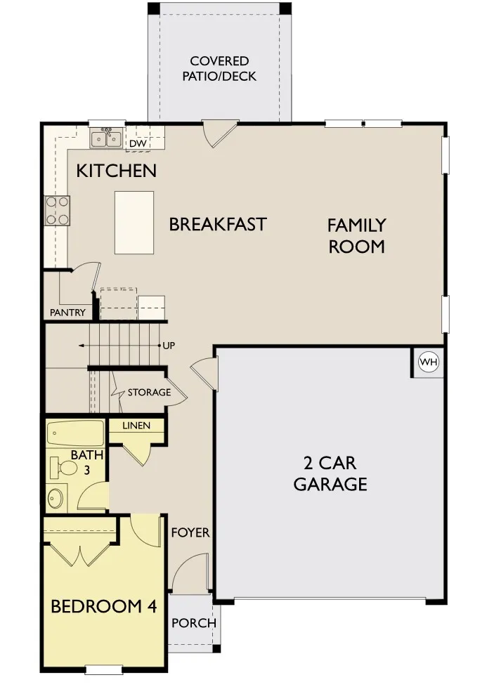 Home is whatever you imagine it to be in this roomy home plan with flexible spaces upstairs and down. The Colton gives you plenty of space to create a home that suits your lifestyle, whether you envision a home gym, play room, office space or an extra bedroom for hosting. This home will feature a 4th bedroom and full bath on the main level and is ideal for extended family, in-laws or out of town visitors.