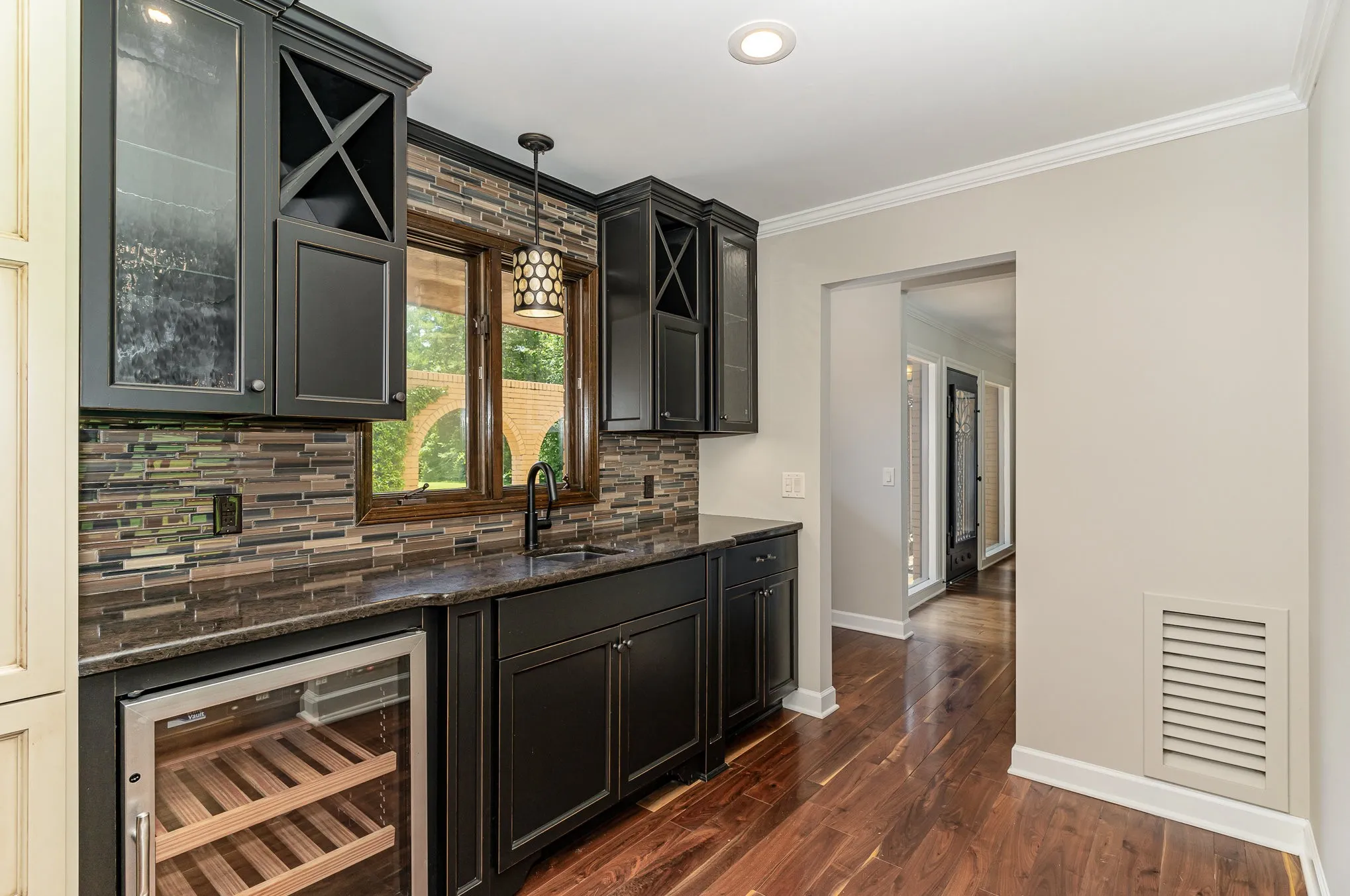 Unique and spacious on an expansive 3.65 acre lot located in the heart of southwest Nashville! Just mere minutes from the Natchez Trace Parkway and Warner Parks! One-of-a kind Mediterranean-inspired architecture aptly describes this one story all-brick home. Complete with courtyard fountain and Tuscan-inspired custom front door! A 2014 renovation included the installation of black walnut hardwoods throughout the living room and kitchen, Barber Cabinet Co custom kitchen cabinetry, a spacious granite island with built-in drawer microwave, Jenn-Air appliances, custom wet bar/coffee area with built-in wine racks and cooler, quartz countertops. Exquisite lighting fixtures throughout the living spaces, travertine tile fireplace with limestone hearth and custom wood mantle! Built-in shelving! Sycamore in dining room! Heated floors in primary bath! New paint throughout entire home and brand new carpets in all bedrooms and office! Backyard storage shed perfect for storing boat, kayaks, canoe!