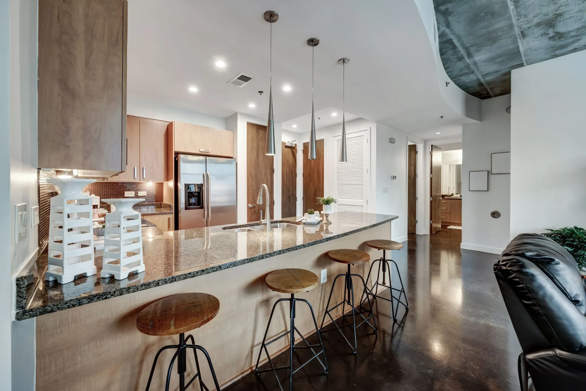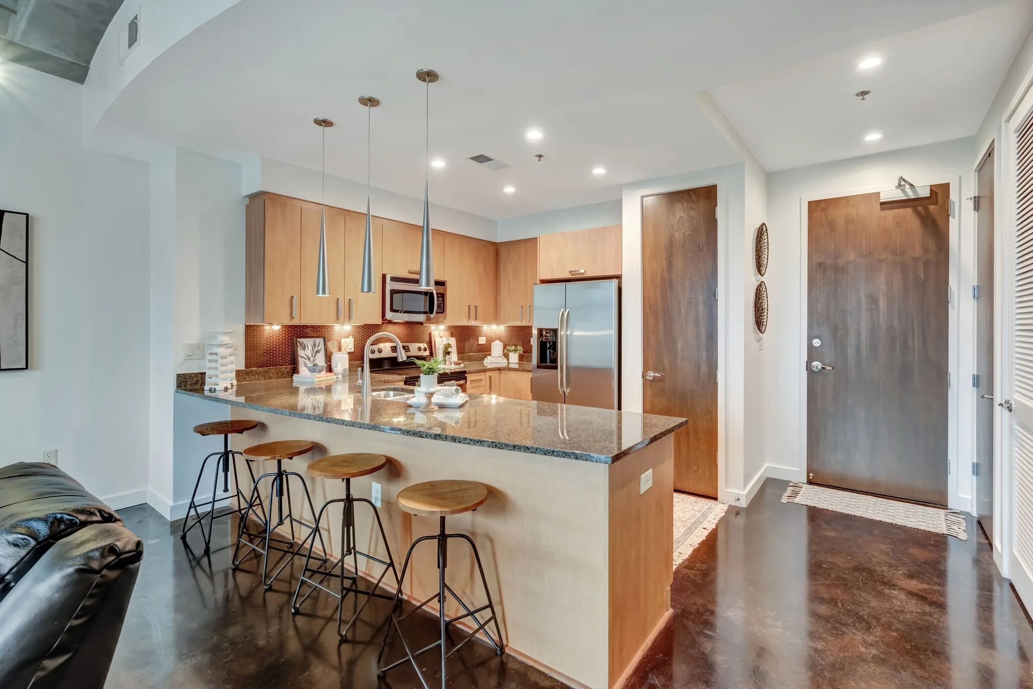 Motivated seller. Living room furniture furniture included, ask agent for exact details. The Rhythm is excellently located. It has easy access to the interstate. Music venues, bars, restaurants, and Bridgestone arena are in walking distance. Enjoy the vibrancy of downtown Nashville from your home. This is a true one bedroom condo. Storage unit and assigned parking are included. Ten minutes to BNA. Six minutes and one mile to the Ryman. Six minute walk to Whole Foods. Six minute walk to Bridgestone Arena.