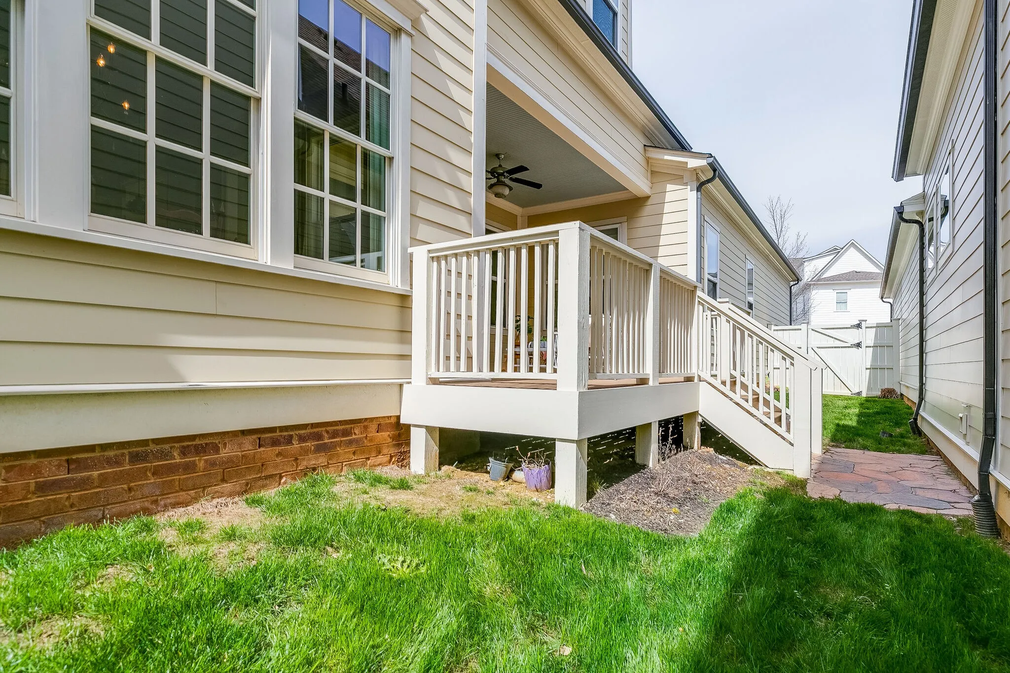 Live carefree and car-free! This gracious house, formerly the Ford Classic Homes model, is located on a quiet street one block from the town center. Bring home your groceries, enjoy your coffee shop, visit the community pool, and have your pick of restaurants all without opening a car door. Primary bedroom on the main floor. Fourth bedroom makes an exceptional study. Wonderful outdoor spaces: front porch downstairs, front deck upstairs, and private side patio. Fenced side yard for a dog run. Oversized 2-car attached garage. All appliances included.