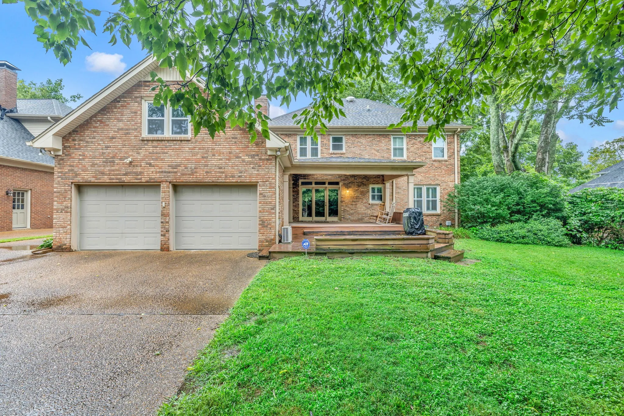 Welcome to your dream home! This vacant and move-in-ready gem boasts custom bookcases, a welcoming downstairs guest suite, and a fresh interior with recent paint and new carpet—step onto the large covered two-level deck, perfect for savoring the tranquil views of your private backyard. Embrace the spacious 22X17 storage area for all your needs. The remodeled master bath and elegant plantation shutters add a touch of luxury. Lush, mature trees surround this wonderful neighborhood and offer the ultimate serenity. Enjoy the easy walk to downtown Franklin on the new walkway, making this home a perfect choice for your future.