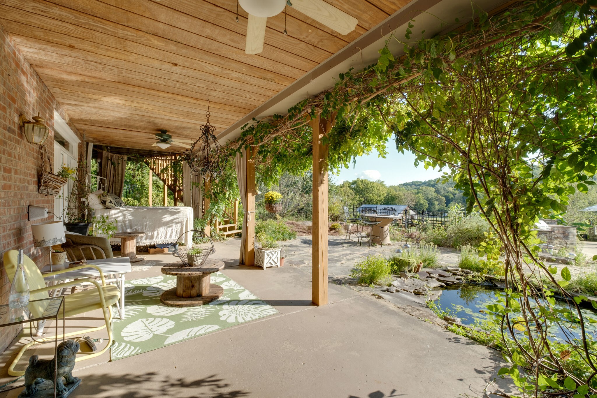 11.5 acre ultra private equestrian property with fabulous valley and ridge views. Two combined parcels with 4 stall horse barn, pond, and creek. Cross fenced + old stone walls. In-ground pool, koi pond, perennial gardens, Plus upper deck and lower level patio. 30 minutes from Nashville and 15 mins from downtown Franklin.