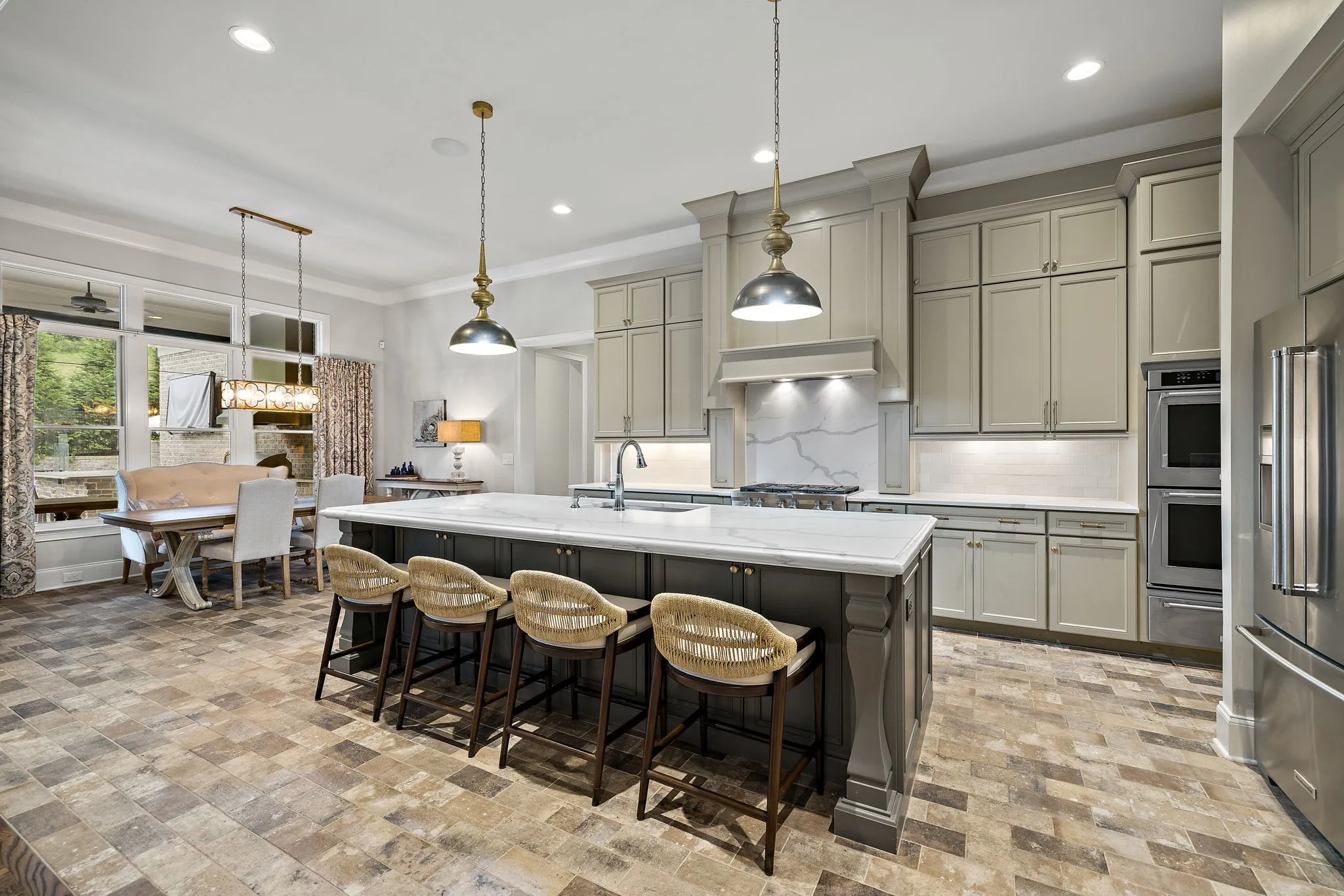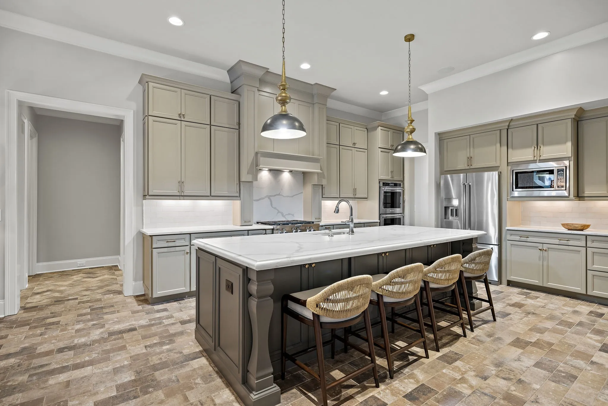 Amazing ALL BRICK home built by Legend Builders w/ Views ~2 bedrooms on main level w/ 2.5 baths ~ 3 car garage tandem w/ epoxy floors & insulated doors ~ Gourmet Kitchen w/ pantry, dbl ovens, warming drawer & 2 dishwashers ~ Butler’s Pantry w/ ice maker, beverage fridge & built in storage ~ Gorgeous Outdoor Living w/ heated pool, spa, lush landscaping, kitchen, retractable screens, fireplace, speakers & lighting ~ Primary bedroom suite w/ view of backyard, coffered ceiling, his / her closets & dressing room ~ Office on 1st floor ~ Generous secondary bedroom sizes w/ Walk in Closets, Private baths, Tiled Showers ~ 3 Walk in Storage Areas approx 1000 sqft ~ Game Room w/ kitchen ~ Bonus room w/ closets ~ Powder rooms on 1st & 2nd floor ~ Hobby room perfect for studying, wrapping, crafts, etc ~ Plantation Shutters ~ 11ft ceilings on main ~ Laundry Rm w/ Sink & hanging space ~ Drop Zone ~ Extensive molding, trim, built in bookcases & detail throughout ~ Irrigation ~ Encapsulated crawlspace