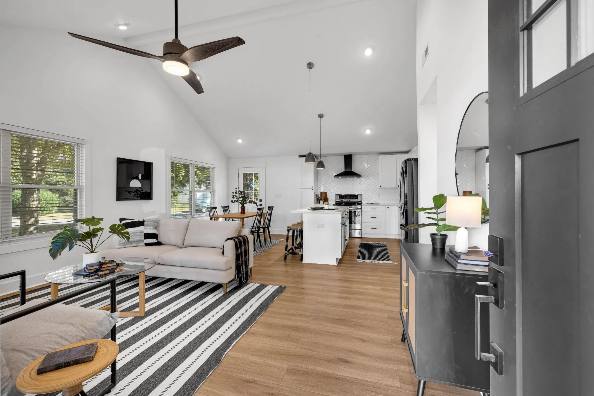This is it! Beautifully renovated cottage just over a mile walk from Downtown Franklin’s retail, shopping, restaurants and much more! An even shorter walk to Franklin Greenway Park System (will shortly connect to Harlinsdale Park). Open and expansive living/dining/kitchen with soaring vaulted ceilings. Kitchen features stainless steel appliances, quartz counters and white, craftsman style cabinetry. Expansive primary suite has separate vanities, oversized tile shower with freestanding tub and a walk in closet that will leave you with room to spare! Exceptional finishes in a coveted location; let’s make this your new home today. Enjoy the covered front porch and the large spacious corner lot with expansive space for kids to play, outdoor games or a BBQ with friends and family.