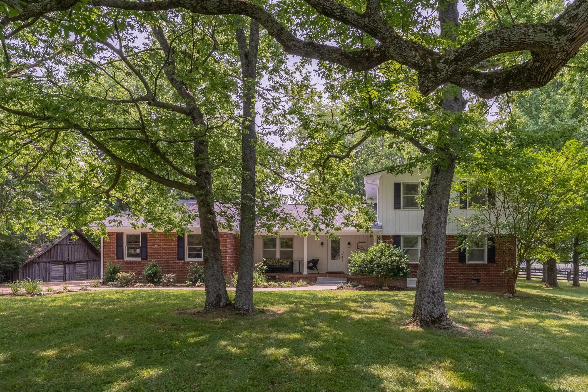 Don’t miss this rare beauty seconds away from famous downtown Leiper’s Fork! This gorgeous, updated brick ranch features 4 bedrooms, 3.5 bathrooms, a 2-car garage and 3,405sqft nestled onto 5 full, flat acres. Featuring two oversized, covered porches, enjoy nature in your own backyard every single day! You’ll find new hardwoods throughout the main floor, renovated bathrooms, an encapsulated crawlspace, and a six-month old roof and shutters! The detached buildings are to die for – The large 50×80 barn was built around 1892 and has two oversized workshops of your dreams! Additionally, there are two other detached buildings with loads of storage with water and electric ready for your touch – One log cabin with a loft overlooking the creek and another building ready for a hot tub or to be converted to a pool house!
