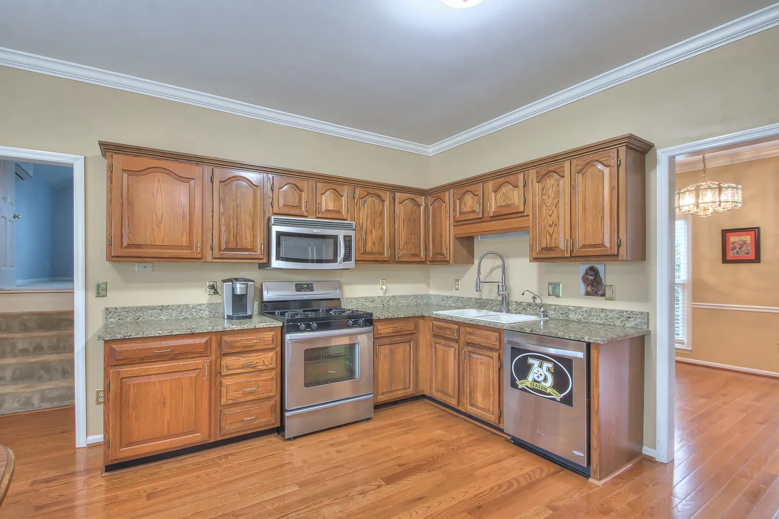 Meticulously maintained 1-owner home in convenient Dallas Downs! The mature tree canopy in the neighborhood with sidewalks throughout creates a picturesque & serene atmosphere that adds to the character & charm. 3 Bedroom, 2.5 Bathroom with Bonus. Attractive curb appeal with a well-manicured lawn, neatly trimmed bushes, and covered back deck. This professionally maintained home presents an ideal opportunity for those looking for a home with good bones but seeking to add their own style and personality. Tankless water heater, new hardwoods 2019, all windows replaced, downstairs HVAC 2019, upstairs HVAC 2015, granite counterops in Kitchen, sprinkler system. Professional lawn/landscaping. Professionally cleaned. Neighborhood pool, playground, pavillion, tennis/pickle ball court. Refrigerator stays. Pool membership is optional for $150/year.