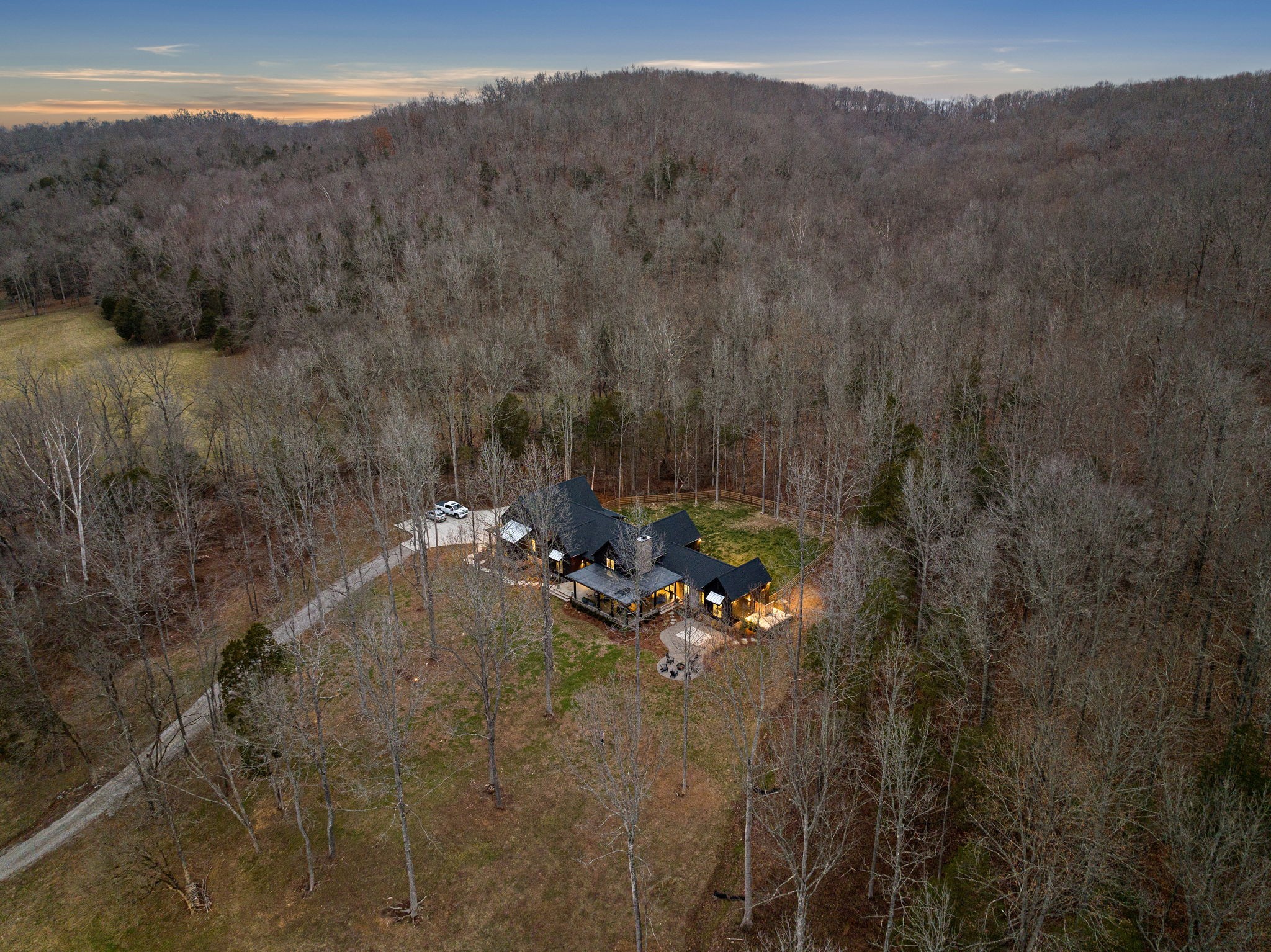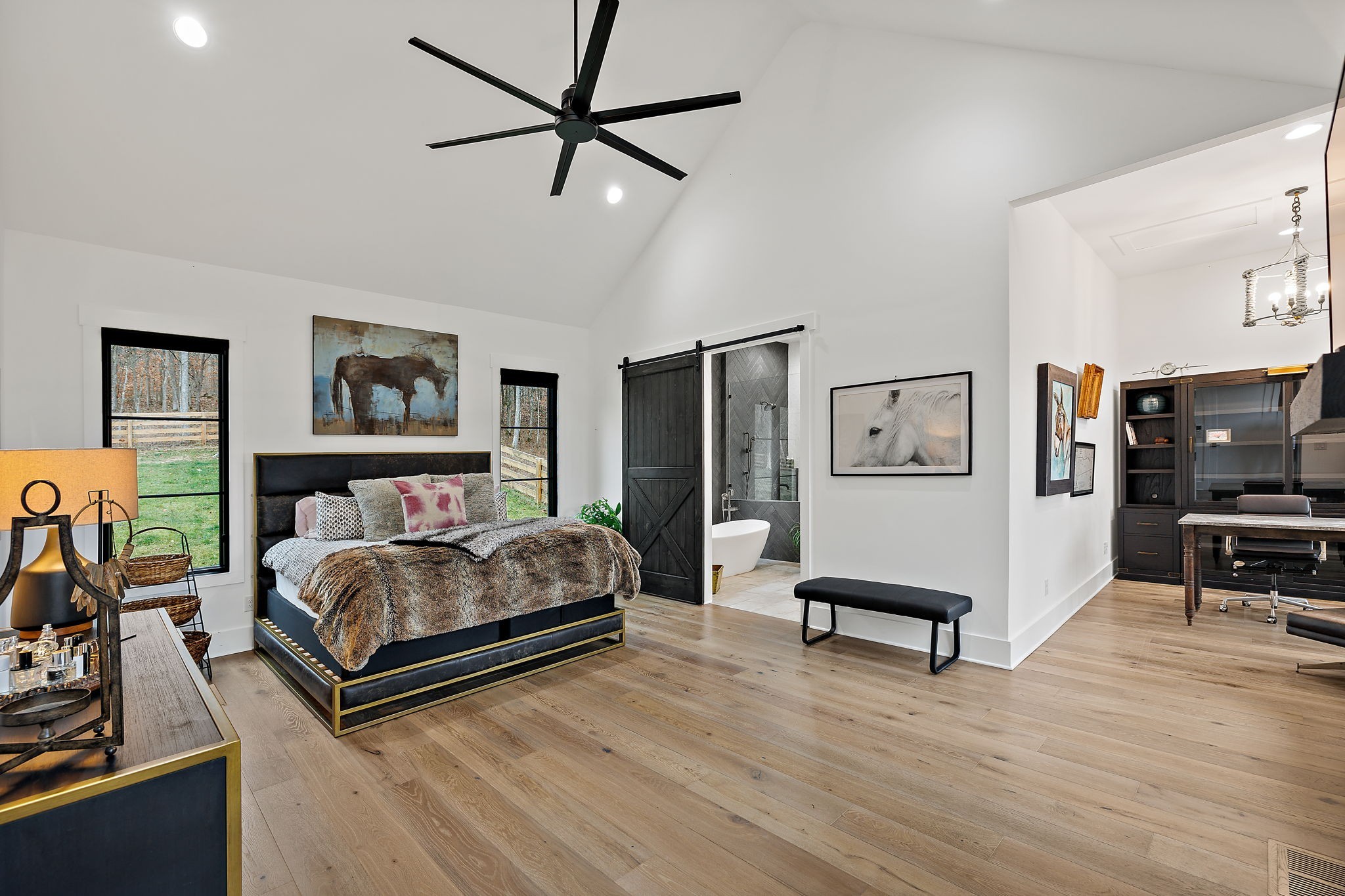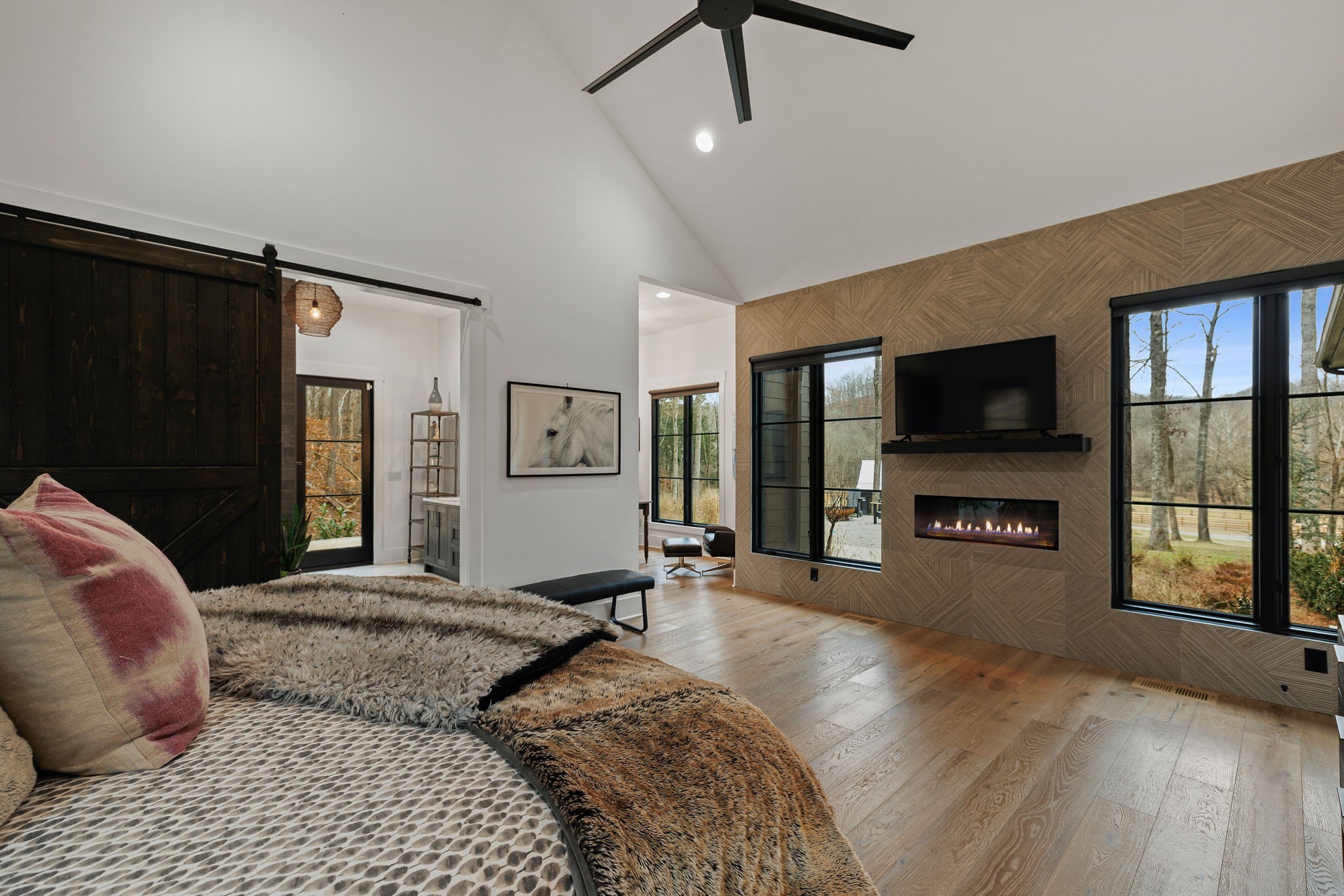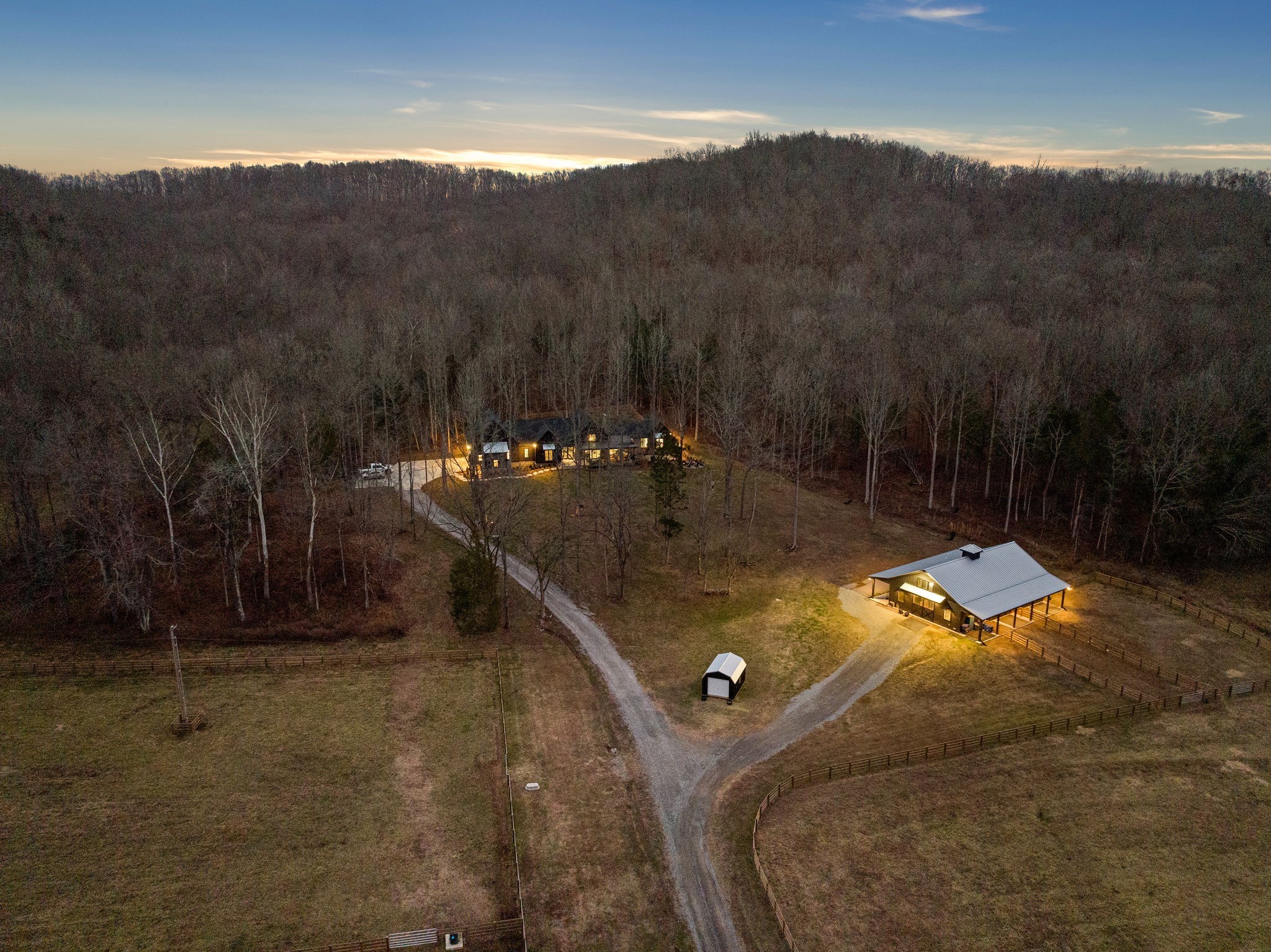 Nestled on 31 acres in the valley of Big East Fork Rd. is a custom-built home tucked away from the road. With wildlife-filled woods, lush open pasture, and the East Fork Creek running along the property, you can enjoy multiple activities on your own farm! From hiking in the woods, to horseback riding in the pastures, to yoga on the bridge over the creek! This farm is truly one-of-a-kind! The custom home is all on one-level with 3 bedrooms. Glass doors and windows throughout the open floor plan reinforce the fluidity between the indoor and outdoor spaces. The 6-stall horse barn is built using only the finest finishes, including beautiful Classic Equine doors and Pella windows throughout. It offers a lounge area, bathroom, and heated wash stall. There is an additional approved perk site to build a guest house. With its inviting tranquility and upmost privacy, this scenic farm offers a rare opportunity to embrace a life of natural beauty and serenity as well as the convenience to town.