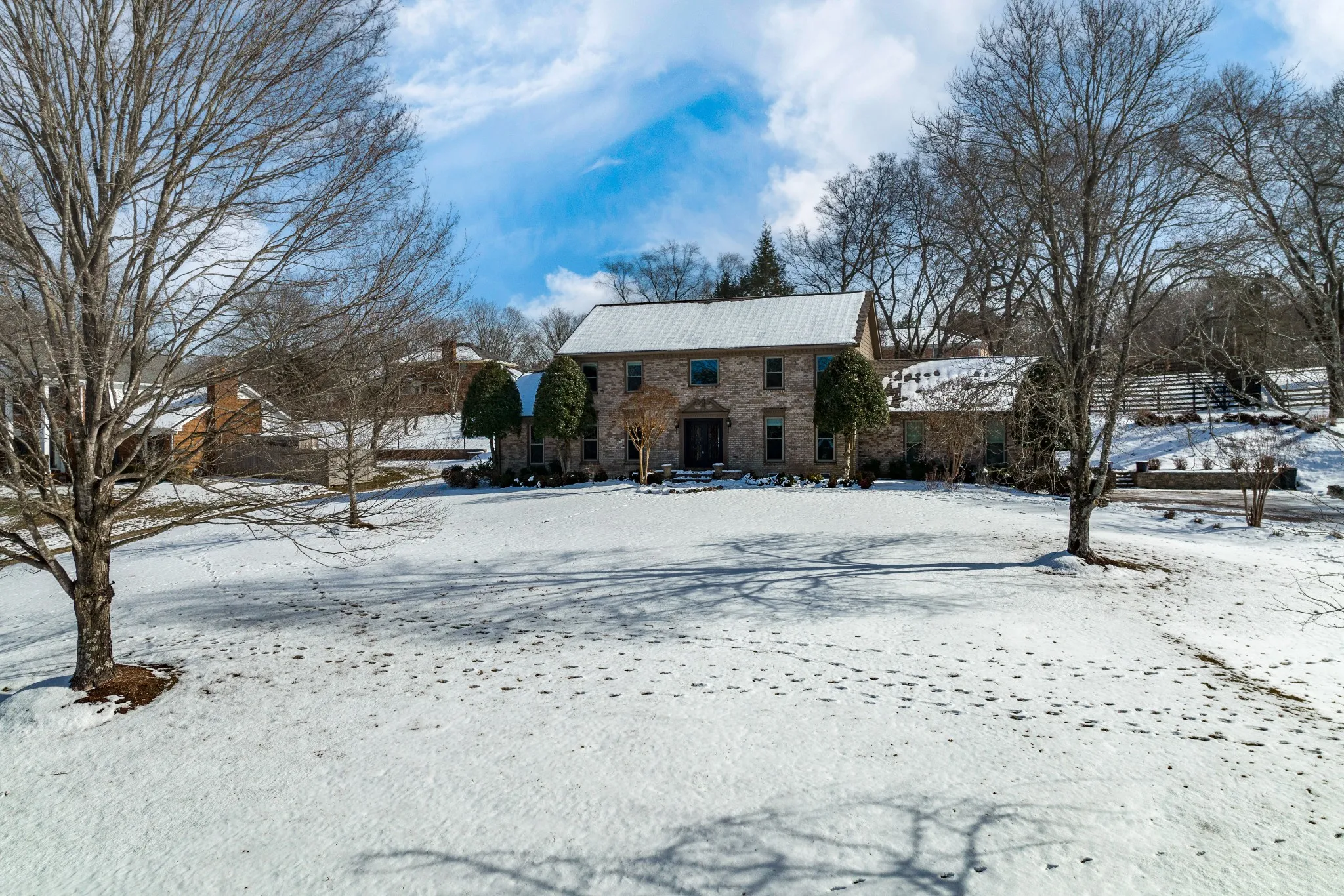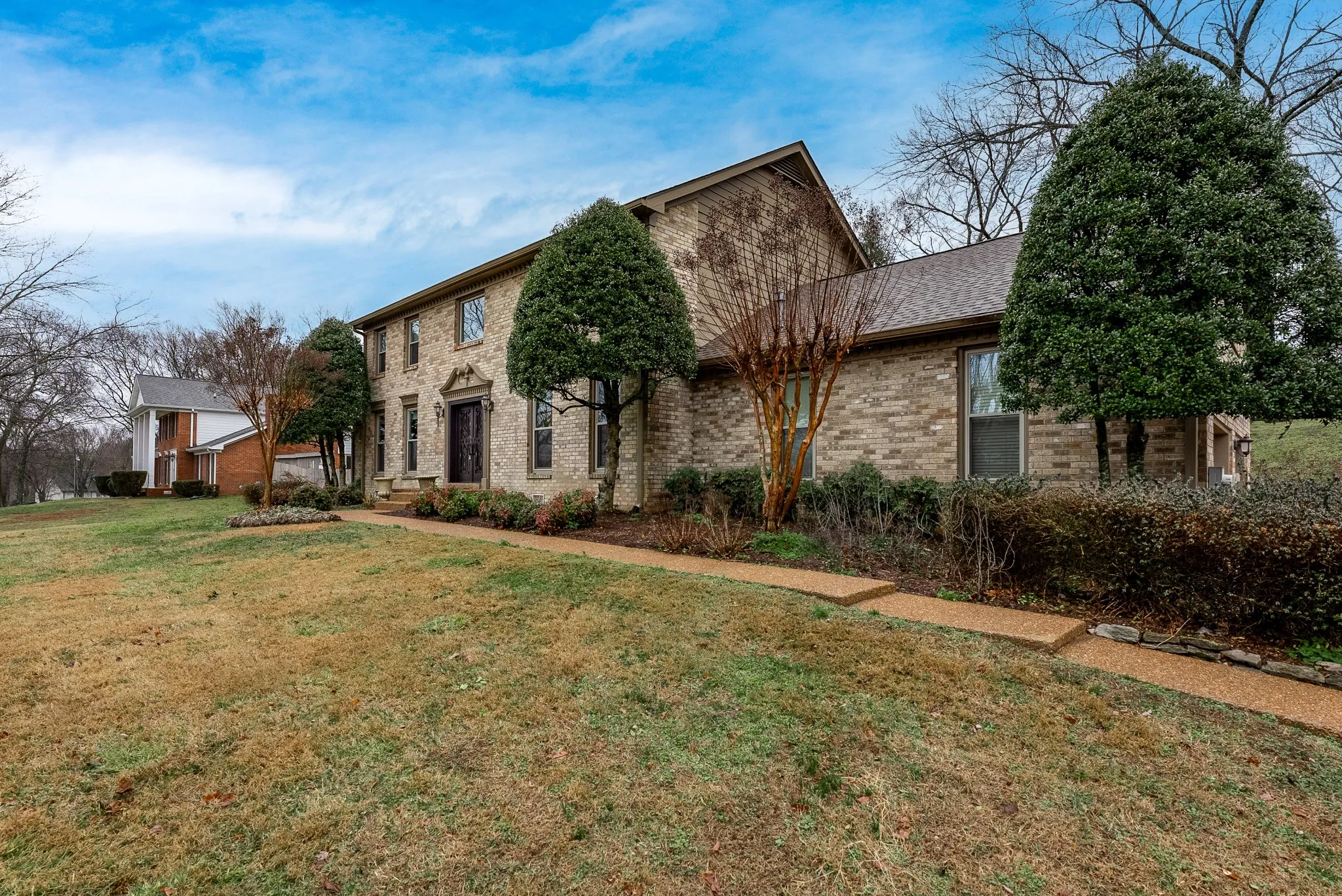 Nestled perfectly in the heart of Franklin on a one-acre lot in the quiet, coveted Cross Creek subdivision, this home was completed remodeled and is move-in ready! With a one-of-a-kind custom kitchen, including granite countertops, s/s appliances, and a beautiful island, this home will take your breath away. The quality craftsmanship complements plenty of entertainment space with natural light throughout. Don’t miss the gorgeous, iron front doors or the main floor guest suite! Enjoy your mornings watching deer pass through the picturesque front lawn or steal away to the privacy of your own back porch. Enjoy some privacy as you entertain guests with tons of charm and character. This home is extremely close to nearby shopping, entertainment, I-65 access, and more, which makes this neighborhood a dream come true! Brand new layout and kitchen, new roof, all new windows, new HVAC/ductwork, new master bath, new floors, and more! New photos coming soon – Don’t miss this one!