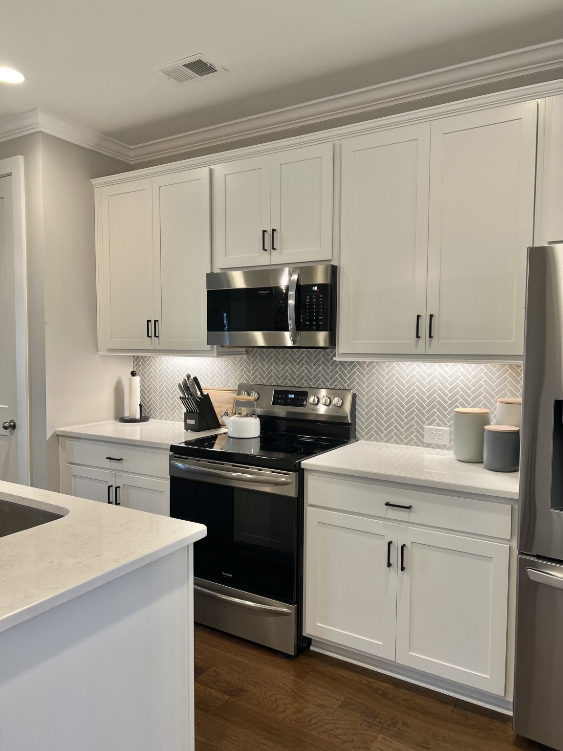 Beautiful, bright, end-unit, 3 bedroom, 2 1/2 bath townhome located minutes from historic Downtown Franklin. Maintenance free living in a picturesque, walkable community. This townhome is perfectly maintained, move-in ready. Spacious great room opens to a beautiful kitchen with extra tall cabinets, large kitchen island, quartz countertops, tile backsplash, s/s appliances, crown molding and more. Laundry room off of dining area. Hardwood floors throughout first floor, stairs and upstairs hallway. Sizable owner’s suite with a large walk-in closet and adjoining bath. Two additional bedrooms upstairs with shared bath. Inviting covered front porch feels like an extra room, perfect for sipping coffee and visiting with neighbors. One car attached garage, pool, clubhouse, grills putting green. Dog park. Retail near neighborhood includes Kroger, Target, Panera, Chick-fil-a.