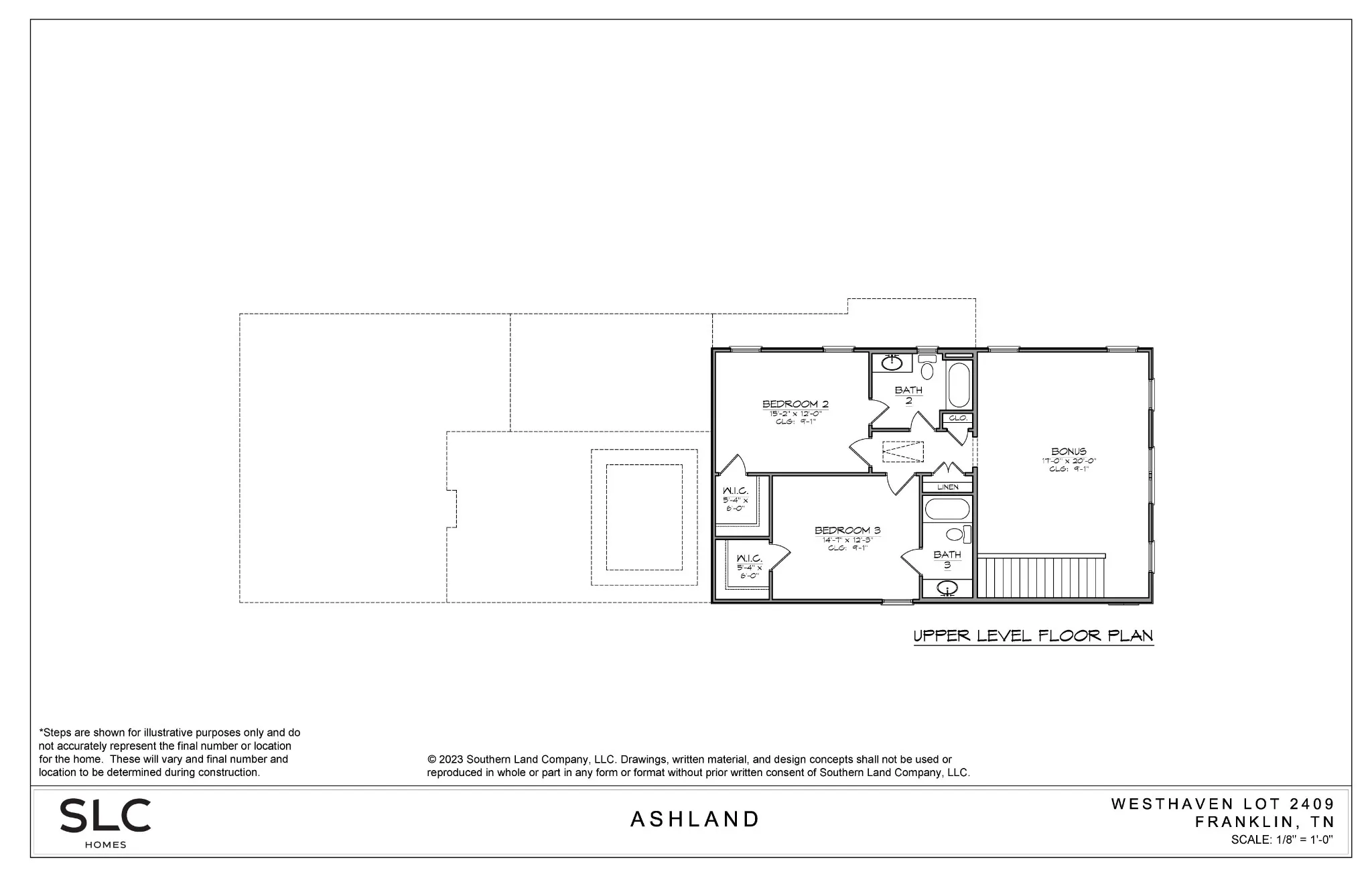 SLC Homebuilding, The Ashland plan on a corner homesite ~Island Kitchen expands into separate Dining Room~ Primary suite on main, 2 BR/ 2 Baths & Bonus upstairs. Full sod and irrigation in Courtyard w/ privacy fence.3- car garage~ Selection Images and floorplan listed in *Documents*