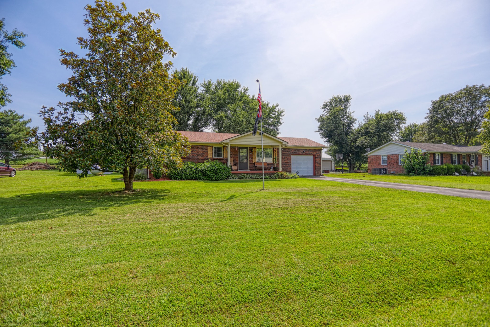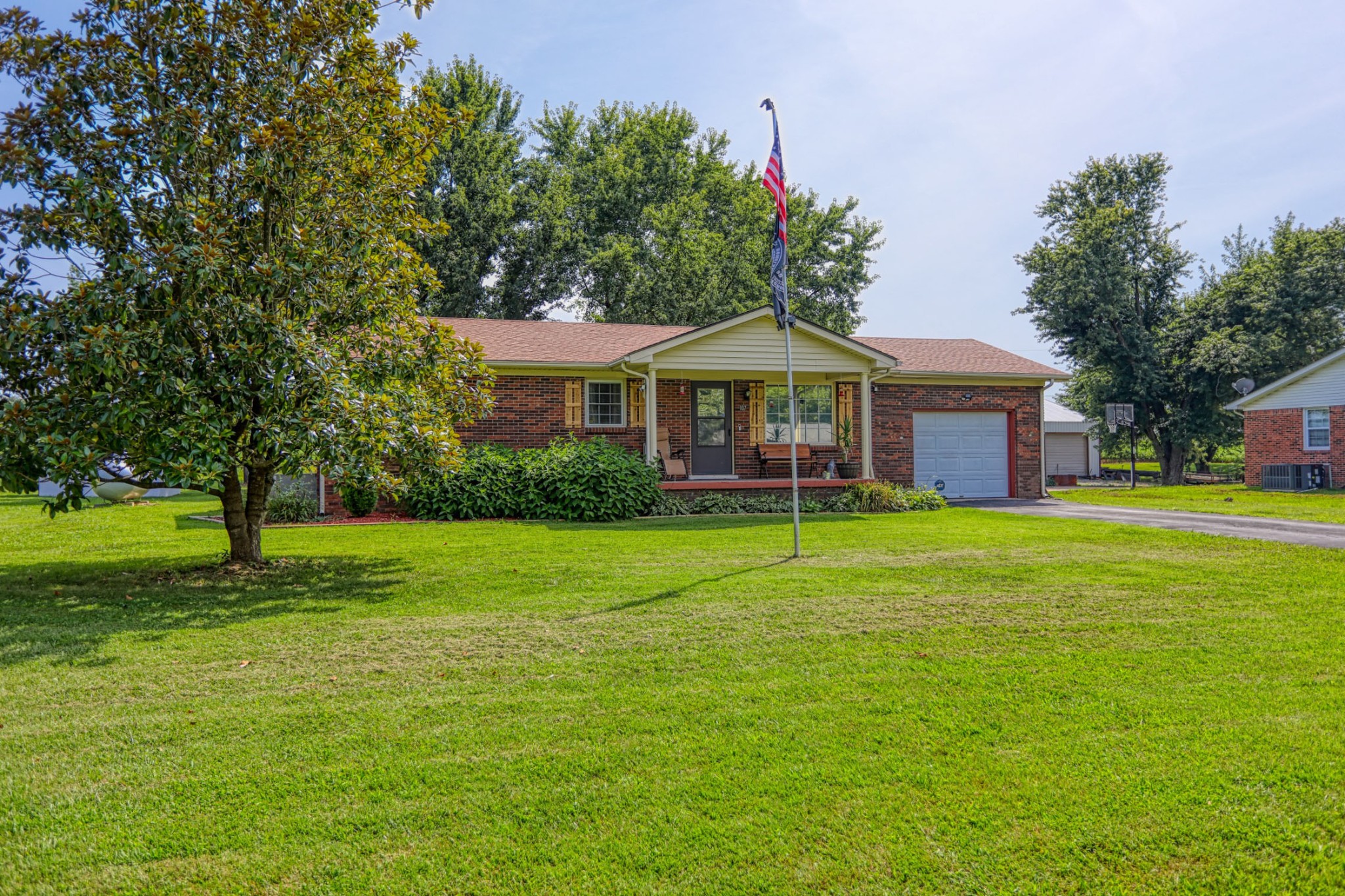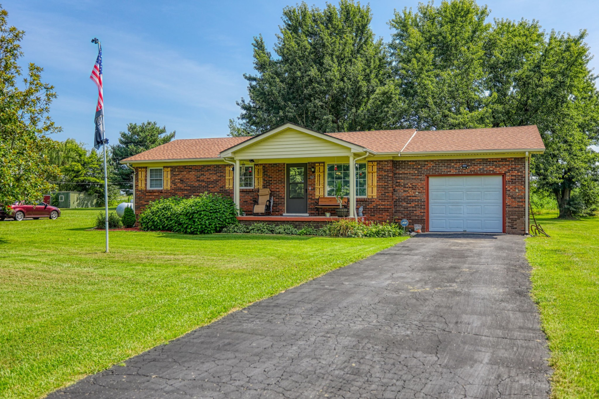 SHOWING BEGIN FEB 20th TUESDAY Solid brick home located less than 1 mile from the Franklin city limit line and 6 minutes to Franklin Square for dining and shopping.. NEW ROOF 2023. Home includes all built-in kitchen appliances including the refrigerator. Clothes washer and dryer will convey with suitable offer, too! Nice sized backyard with a sweet country view. Privacy fenced installed 3 yrs ago and is great for pets or kids. 1 car garage for vehicle storage or workshop. The garage has a suitable area to add 2nd bath if needed. More storage is available by way of the detached storage building (approx 3 years old). Mature trees and good landscaping in front and back.