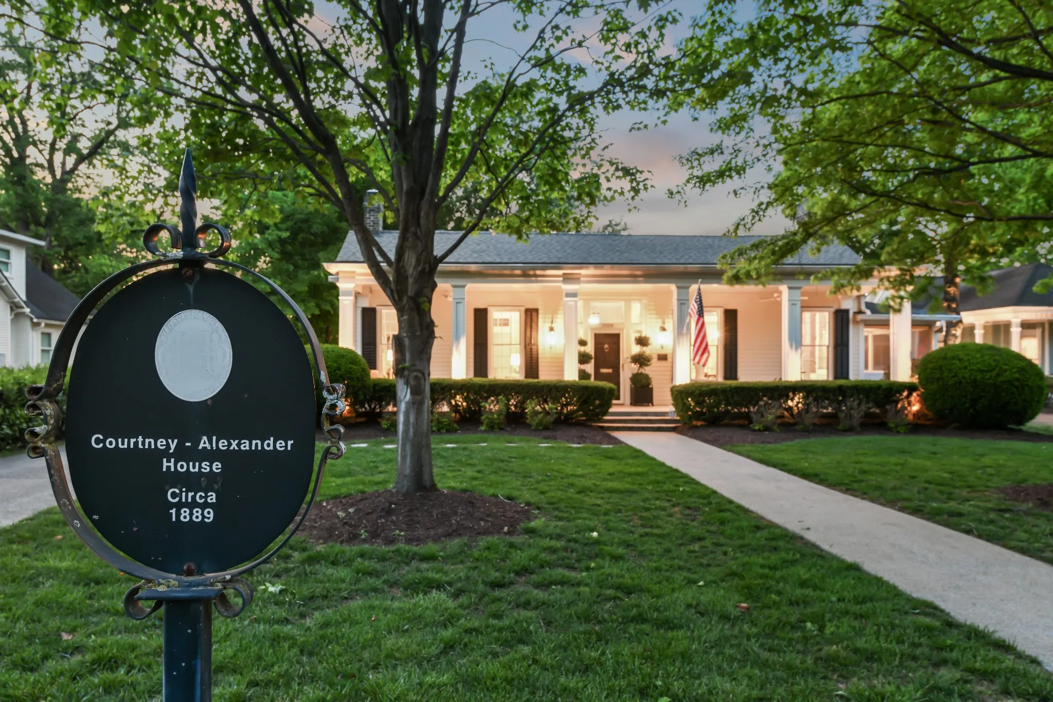 Own a rare piece of downtown Franklin history minutes from America’s Favorite Main Street. Built in 1889 and on the National Register of Historic Places, the Courtney-Alexander House offers a rare blend of history and convenience on a private, over half-acre lot with mature trees and ample space for imagining a pool, addition, or detached dwelling. Stately dining and living rooms with dual gas fireplaces and beautifully restored hardwood floors throughout. Enjoy one-level living with a chef’s kitchen and primary suite with walk-in closet, built-in storage, and claw-foot tub with separate tiled shower. Fabulous outdoor spaces with expansive covered front porch, screened-in side porch, entertainer’s patio, and a lush, level lot full of possibilities. Attached 2-car garage and gated entry.