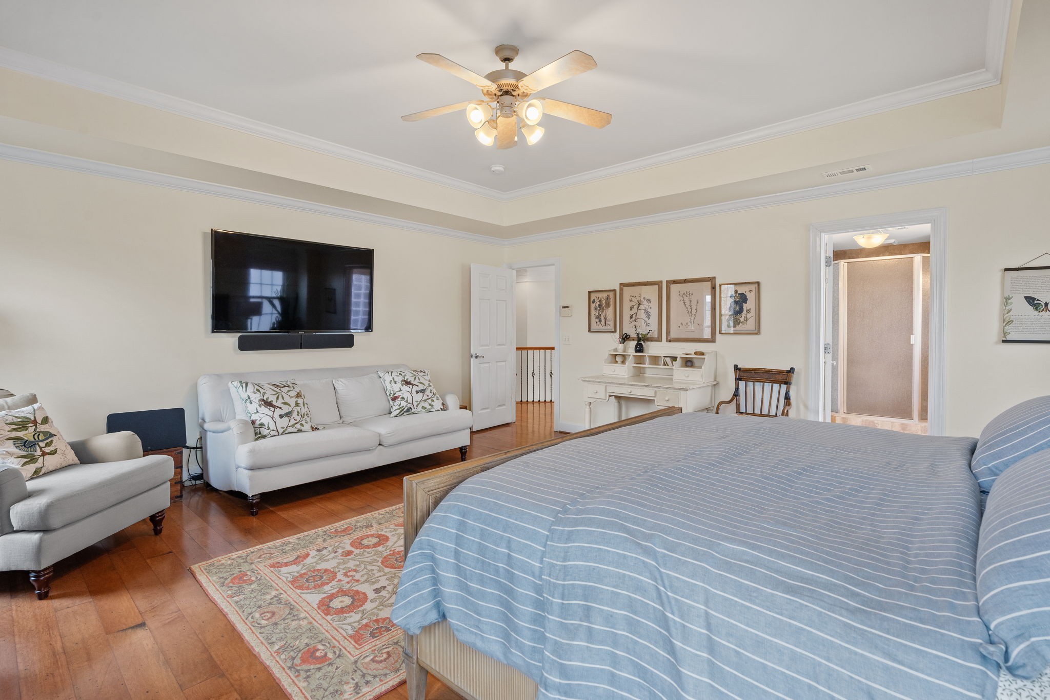 Fabulous Franklin Home in River Landing. Beautiful Home Situated on .57 Acres. Zoned for Williamson County Schools. Floor Plan offers Optimal Space for Entertaining. Hardwood Floors Throughout. Formal Dining Room & Formal Living Room Greet you as you walk in. The Kitchen Boasts Stainless Steel Appliances–Double Ovens, Gas Cooktop, Refrigerator, Microwave, & Dishwasher. Gorgeous Granite Countertops. Breakfast Area Overlooking the Well-Manicured, Fenced Backyard. Main Level Guest Bedroom with Hallway Full Bath. Upstairs is host to the Light-Filled Primary Suite. Primary Bathroom has Soaking Tub, Walk-in Shower, Water Closet, Double Vanities, & His-and-Her Closets. 3 Additional Bedrooms & 2 Full Baths are also Upstairs. Large, Carpeted Rec. Room/Media Room is located off the Back Staircase. Enjoy the Outdoors on your Covered Deck. Backyard is Fenced. 3-Car Garage. Per Owner–not required to Pay Flood Insurance. Enjoy the Peaceful Setting of River Landing in this Wonderful Home!