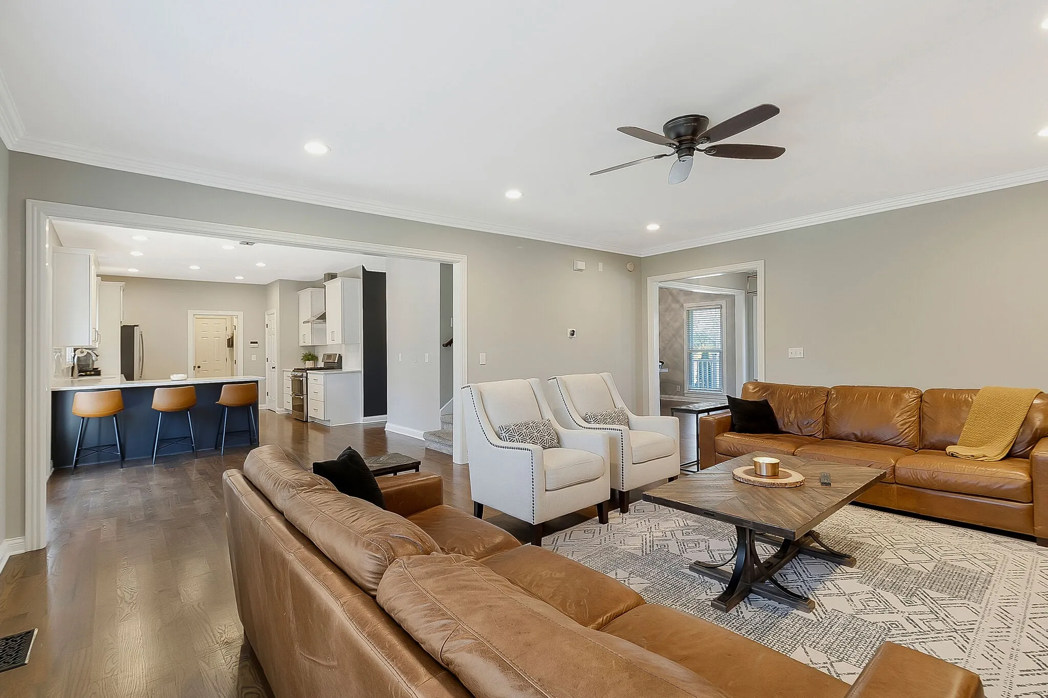 Back on the market! Showings start Thursday 3/28 – Welcome home! Right outside the heart of Franklin, this stunning all brick home is nestled on an oversized lot that backs up to green space to give all the privacy for entertaining or relaxing you could ever want. Real hardwood floors on main, fully renovated kitchen with gas cooktop and oven, spacious and cozy living room with gas fireplace and built-ins. Formal dining room and separate office. Extra large Primary bedroom suite with completely renovated bath and walk-in closet with built-ins. Huge side entry 3 car garage. HVAC units new in 2017 & 2018, New water heaters in 2021. New composite deck in 2020. New roof & gutters, in 2020, New windows in 2023. Walk in crawlspace which can be used for storage, music room, etc.