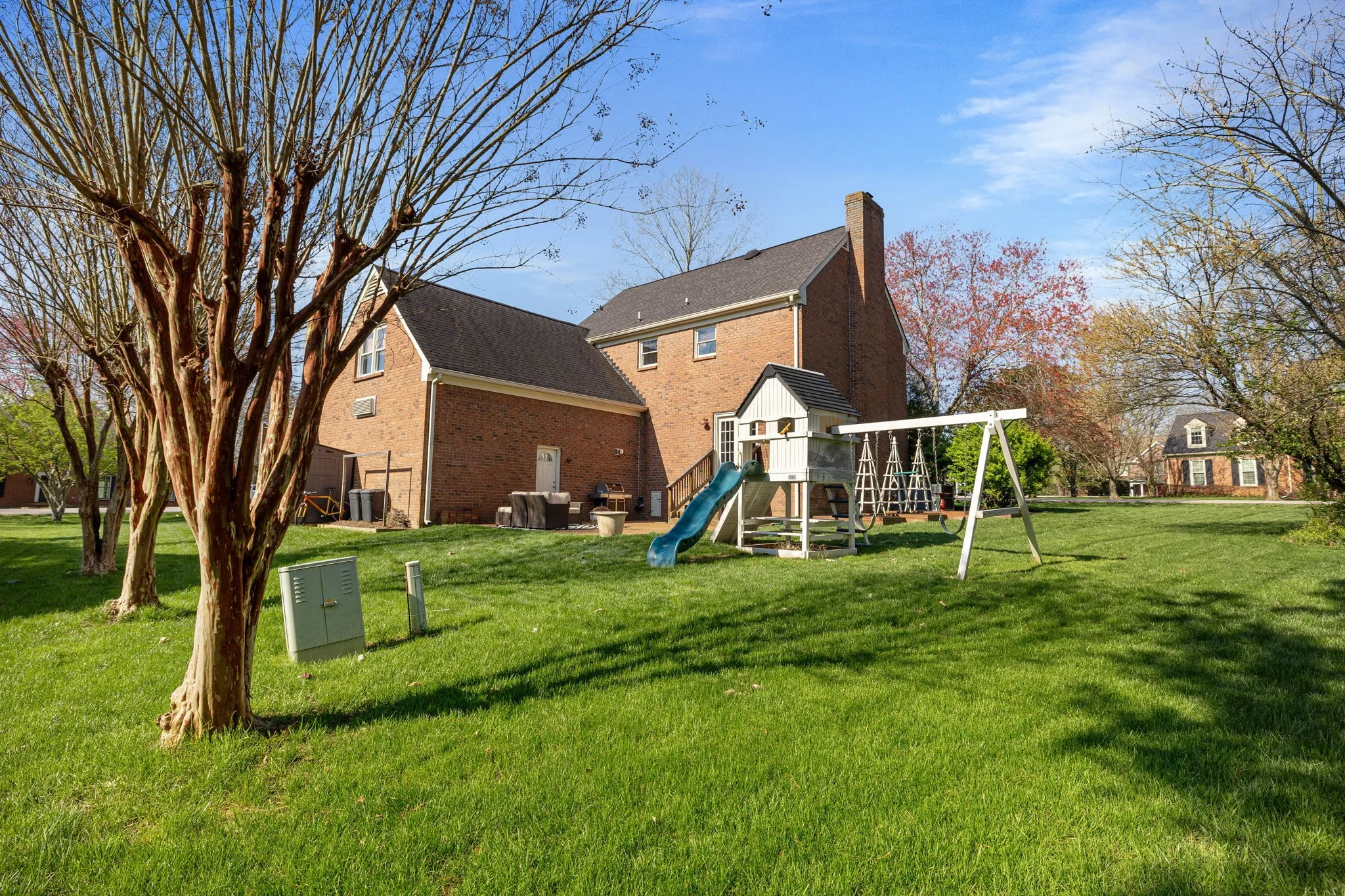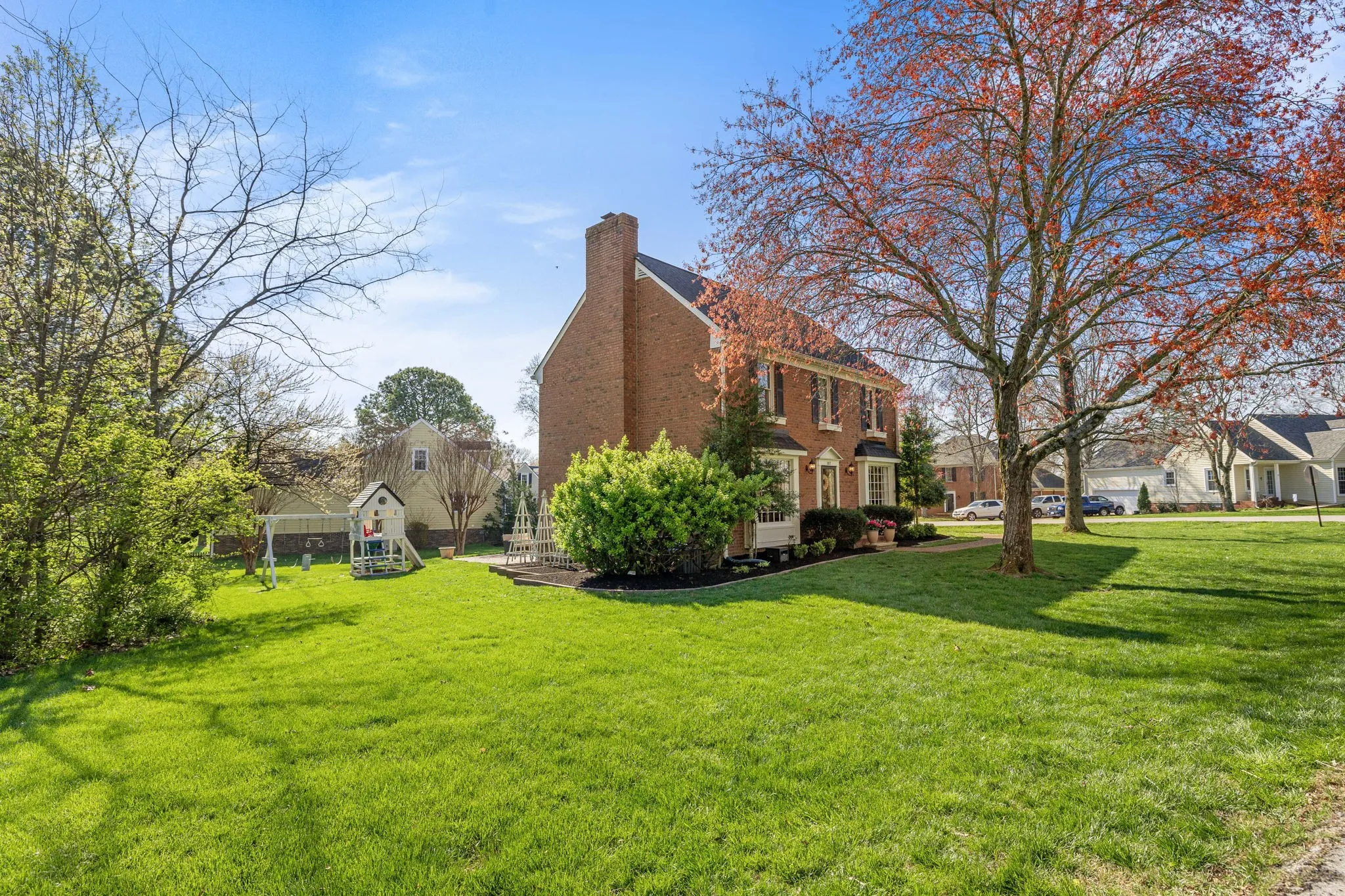 Nestled in coveted Cottonwood Estates, this all-brick home sits on a corner lot in a cul-de-sac. Featured in the Cottonwood Tour of Homes, it boasts sand and finish hardwoods, renovated kitchen with a breakfast nook, inset cabinets and gas range. Take in the natural light in the breakfast nook and dining room which offers large floor to ceiling windows. The living room offers a wood-burning fireplace and access to the rear patio. The primary suite includes a private office/exercise/flex room, while the spacious bonus room situated above the garage on the second floor offers numerous possibilities. Two secondary bedrooms share a full bath. Cottonwood Estates is a community known for its events and amenities – pool, clubhouse, tennis/pickleball courts/playground, disc golf, walking trails, soccer fields and more! Not to mention the 4th of July parade & fireworks! Along with those amenities and others you also have the Harpeth River access for fishing, swimming, canoeing, or tubing.