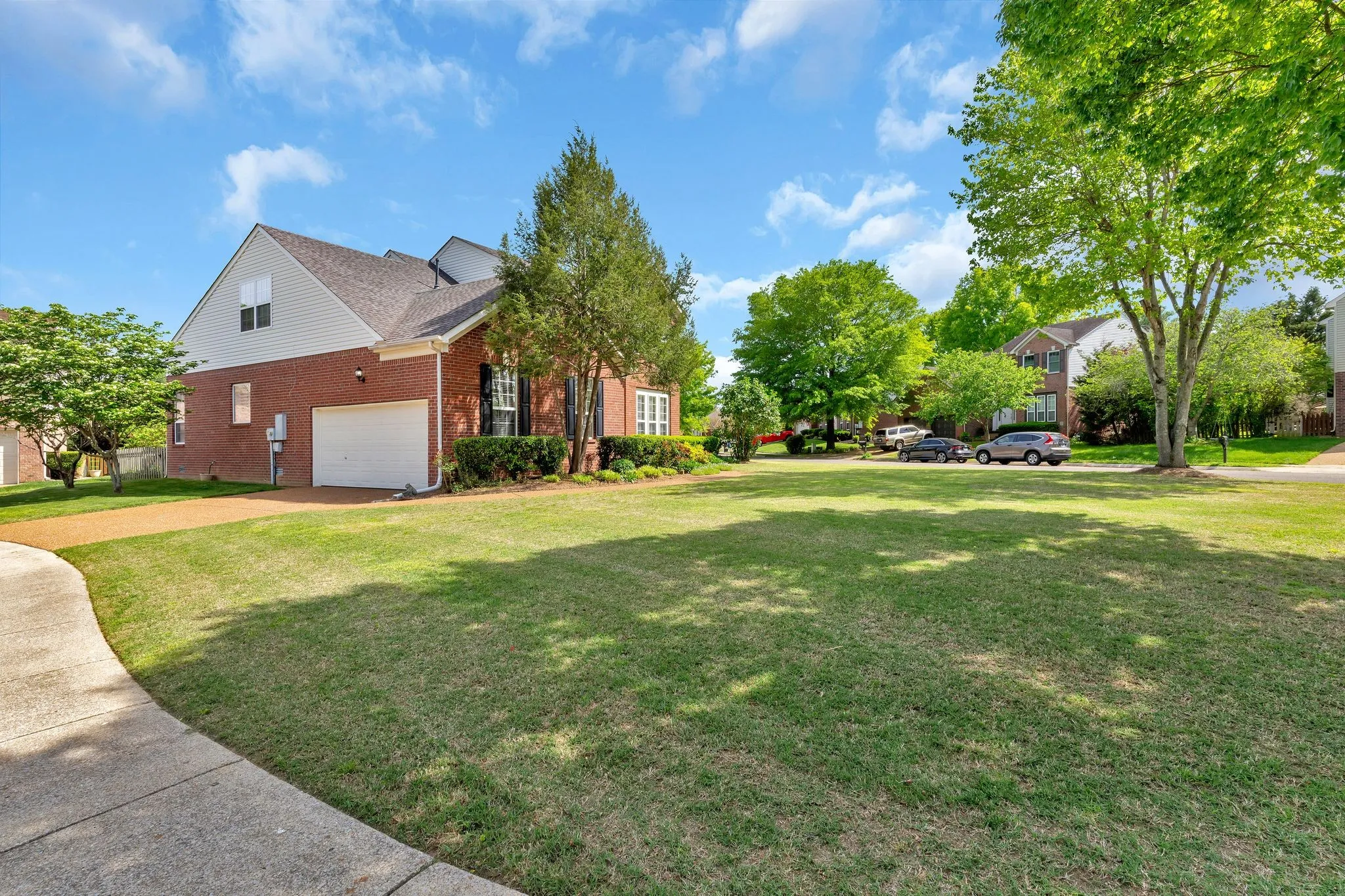 Large, corner lot located on quiet cul-de-sac. Minutes to downtown Franklin. Neighborhood sidewalks for biking/walking. MASTER SUITE ON MAIN LEVEL. Updated kitchen with newer appliances & granite counter tops. Vaulted ceilings allow home to be flooded with natural light. Level, fenced backyard w/perennial plantings. HVAC REPLACED Feb.2023. Plumbing/Electrical maintenance 3/2024. Extra storage shelves in garage. Founders Point has community pool and playground