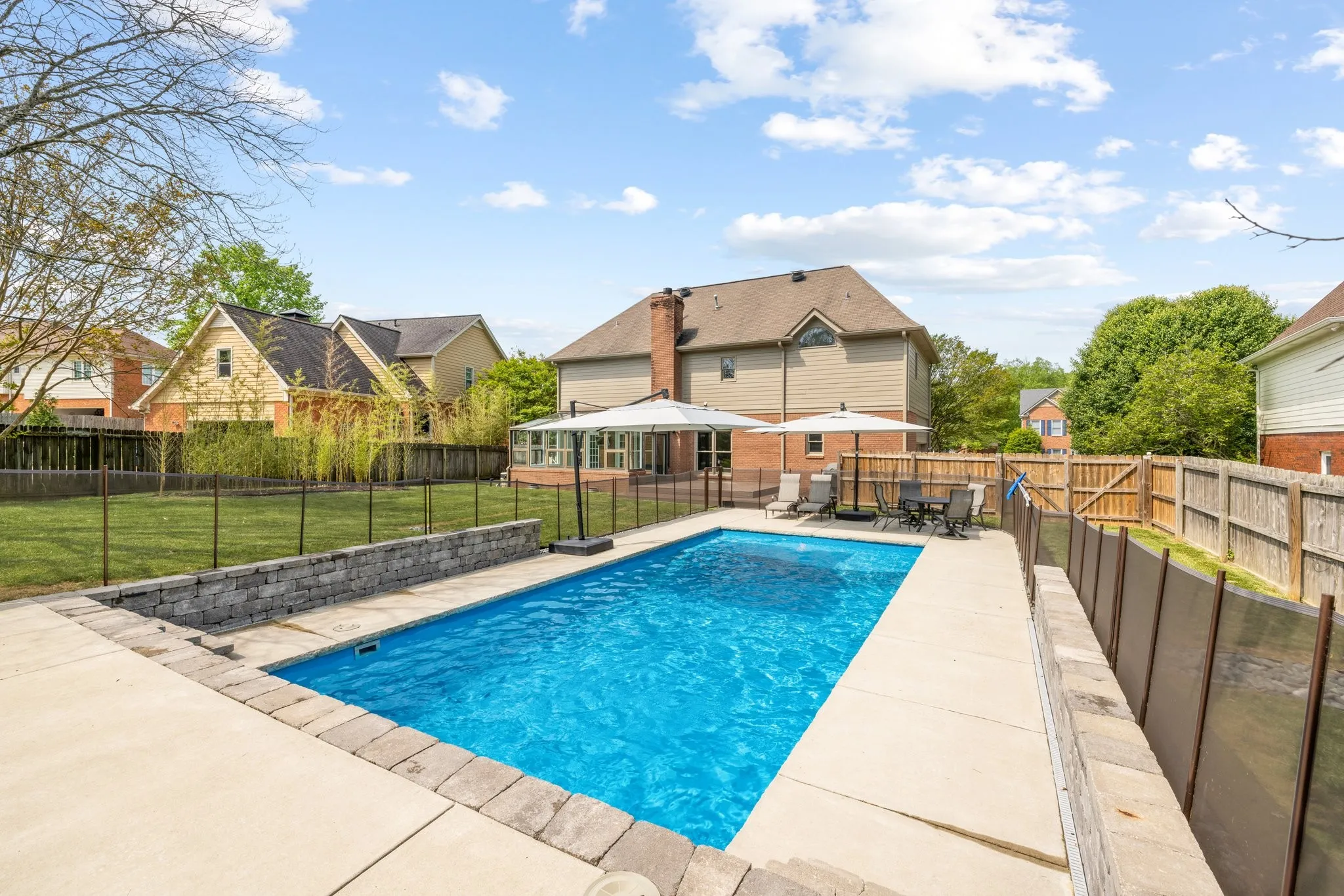 Welcome to your own move-in ready private oasis featuring a pool in Forrest Crossing! Fresh landscaping & a flawless lawn enhance the curb appeal of this magnificent home, setting the stage for a warm welcome every time you return. Inside, hardwood floors guide you through the light-filled living spaces. Upstairs, the primary suite awaits, offering ample space for rest & relaxation. With the convenience of a second level laundry room close by, daily chores become a breeze. Heated and cooled, the sunroom offers a comfortable retreat for year-round relaxation and entertainment. Step outside to discover your own slice of paradise, complete with a spacious Trex deck & inviting in-ground pool—ideal for soaking up the beautiful summer weather in Middle Tennessee. Safety is paramount with the included removable pool fence, while the 400k BTU heater ensures your pool remains the perfect temperature for year-round enjoyment.Don’t miss out on the opportunity to call this breathtaking home yours!