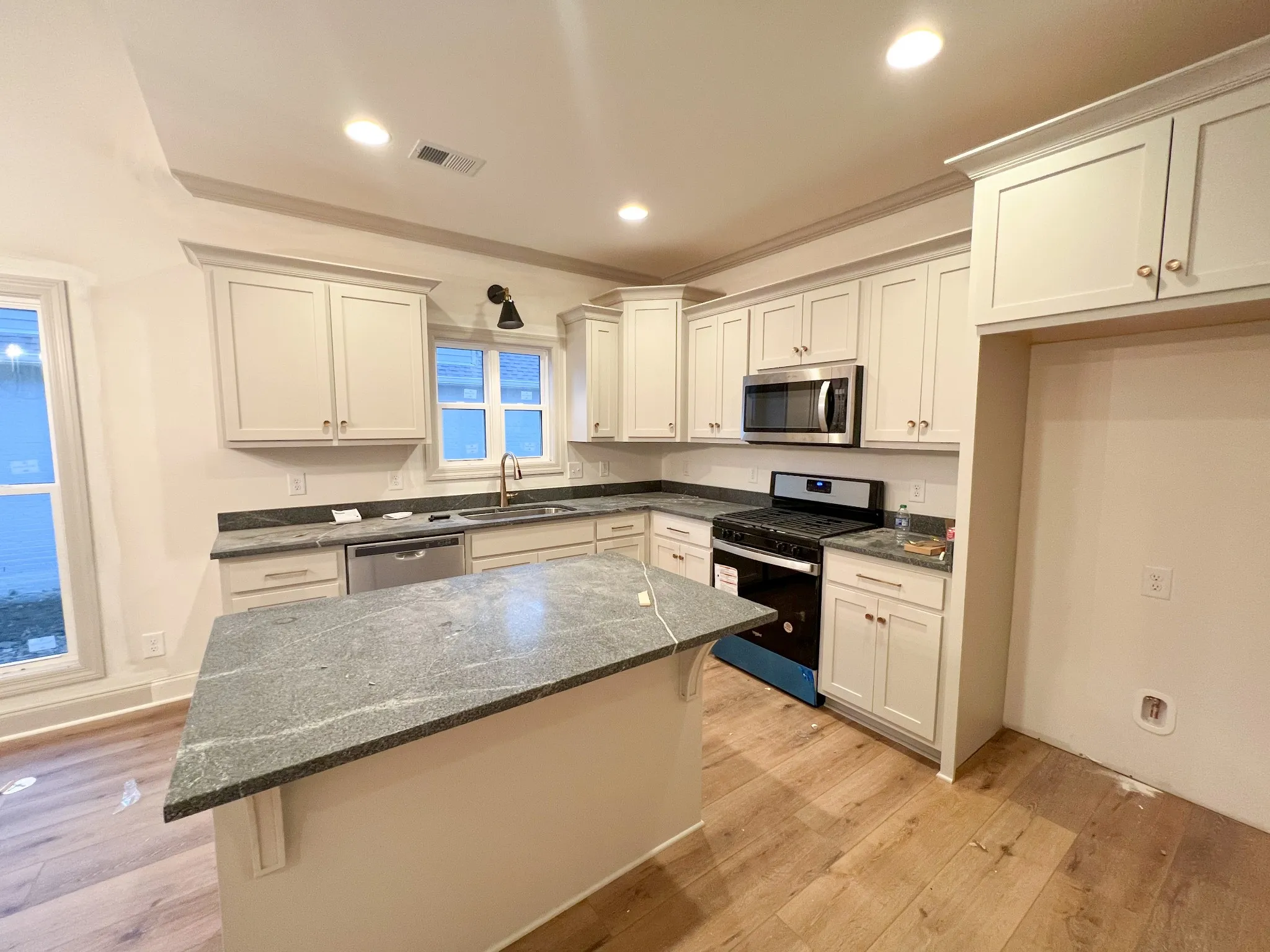 This beautiful painted brick home is being built by local builder Stewart Knowles Construction. It is a 3BR/2.5BA home with a 2-car garage. This home features an open floor plan with primary bedroom on main level and 2 bedrooms with a full bathroom on the 2nd floor. Large kitchen with custom cabinets, granite counters, beautiful lighting, gas range, fireplace with vertical shiplap trim, and a back porch. This home is a must see!