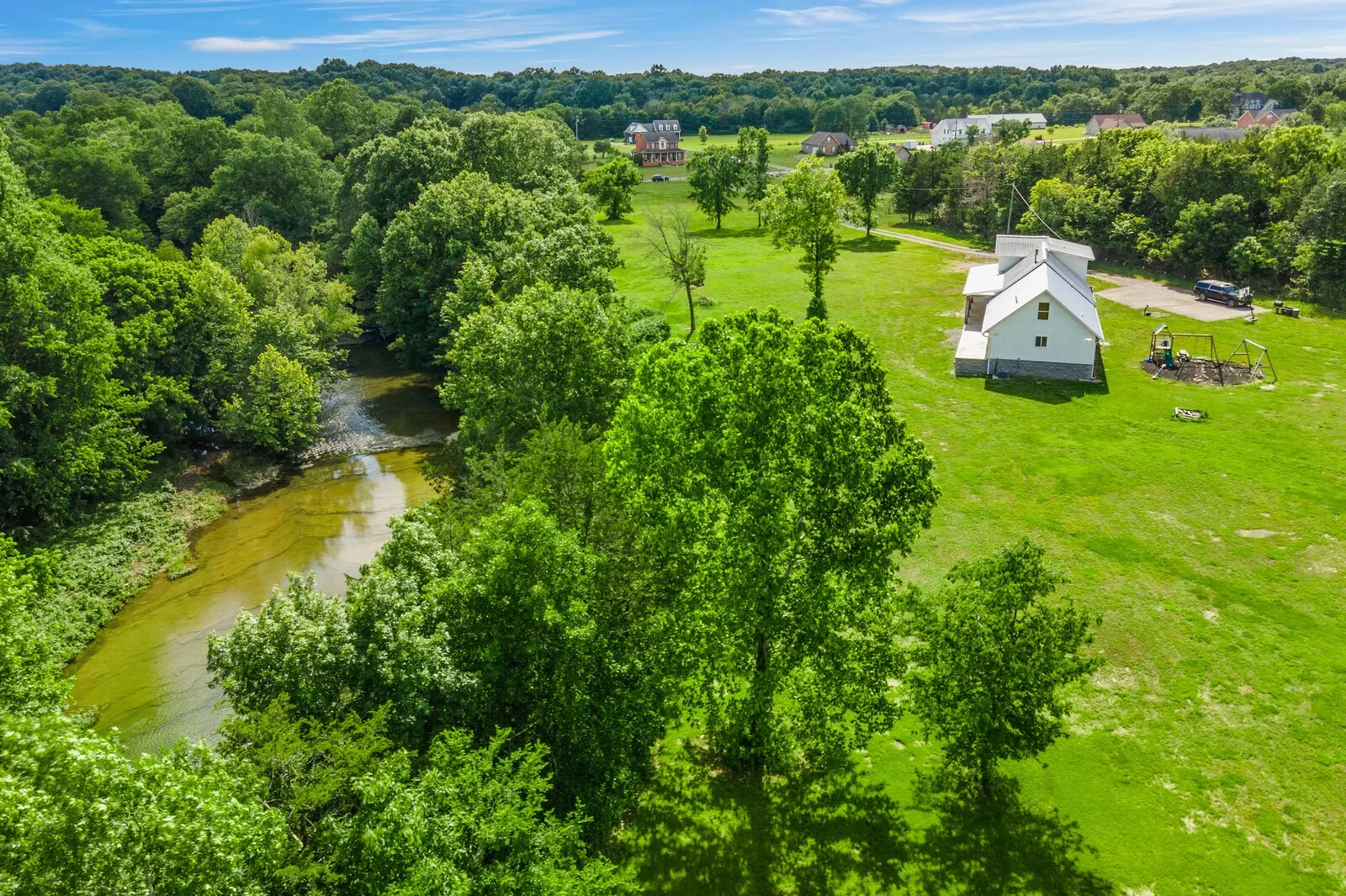 GORGEOUS FARM in Lebanon, TN! Beautiful renovated farmhouse style with five bedrooms and three full baths on 12.4 acres!! You can fish, hunt, garden and farm all on this property!! Creek is plentiful with Small Mouth and Redeye Bass! The creek is so peaceful and truly a treasure. Take time to explore it during your showing! Open floor-plan and modern throughout! Spacious front porch facing the creek! Storm shelter that can accommodate up to 12 people! Wood-burning stove as well as two HVAC systems. Barn/two car detached garage makes for excellent storage or man cave! 500-gallon buried propane tank! Elegant spiral staircase leading to a loft in the new addition! French doors leading into the Primary suite! This farm in conveniently located to I-840, Lebanon, Murfreesboro, the Nashville International airport(BNA), shopping, medical care, etc! There’s an additional 437 square feet in the loft! MUST SEE!