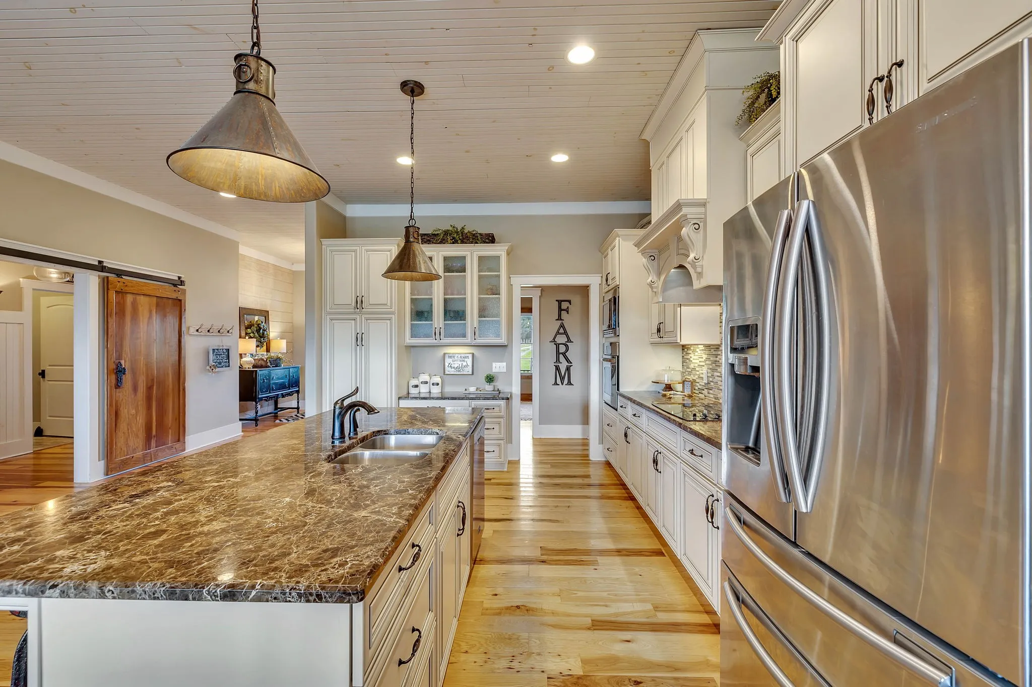 Step into an elegant 3,600 square foot farmhouse with an open floor plan, designed to accommodate modern living. Hardwood and tile floors throughout add a touch of sophistication, while the beautiful country kitchen becomes the heart of the home. The two-car attached garage ensures convenience and ease. The property boasts a substantial 62 ft by 100 ft shop, offering ample storage and workspace for your needs. Multiple barns add to the functionality of the estate, providing practicality and versatility for farming operations. The property is thoughtfully fenced and cross-fenced, making it ideal for accommodating up to 100 head of cattle. Embrace the opportunity to run a productive cattle farm on this fertile land.