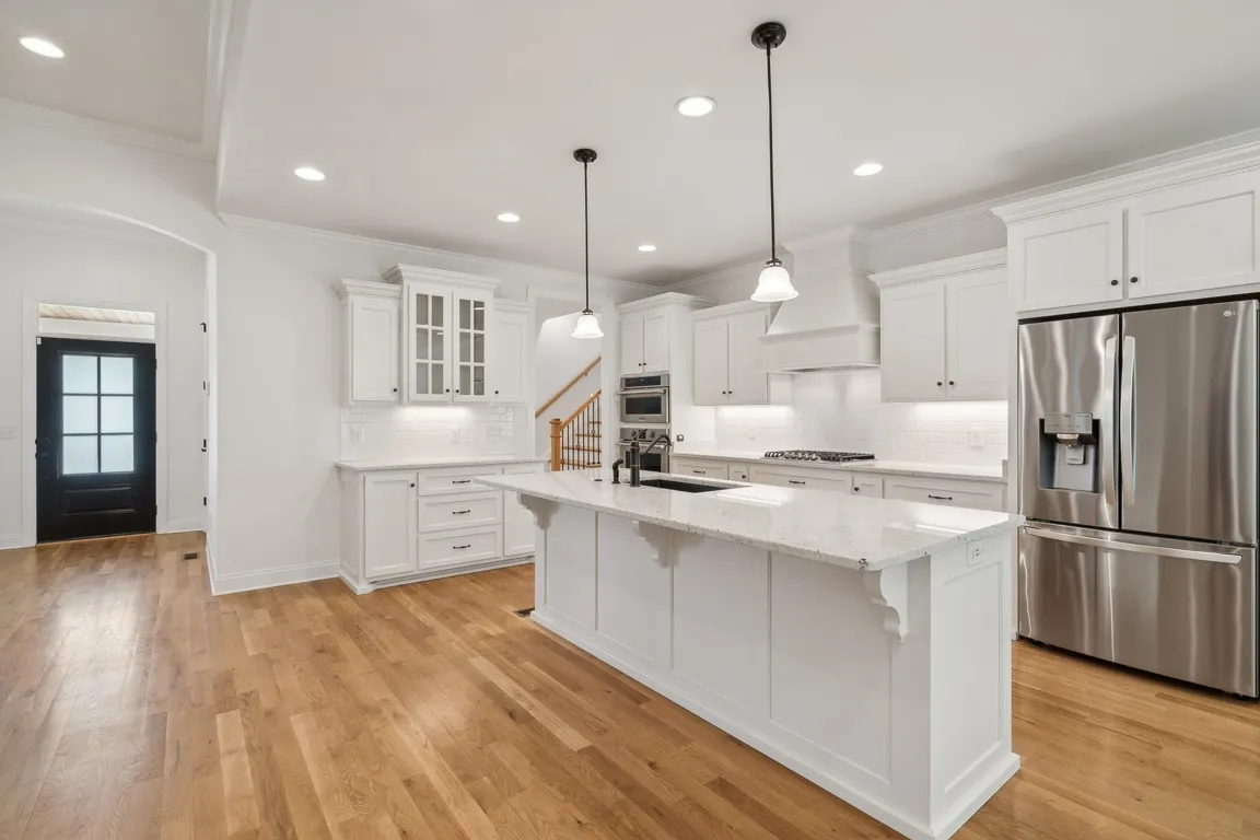 Exquisite Home in Columbia TN, LIKE NEW, 1.86 Acre Treed Lot, Entry Foyer, Formal Living Room, Gathering Room with Fireplace, Chef’s Kitchen with White Custom Cabinetry, a Pantry and adjacent Large Dining Area, Granite Counter-tops, Spacious Primary Suite and Private Bath (soaking tub, tiled shower, private water closet, 2 vanities), Covered Back Patio, 3 Car Side Entry Garage