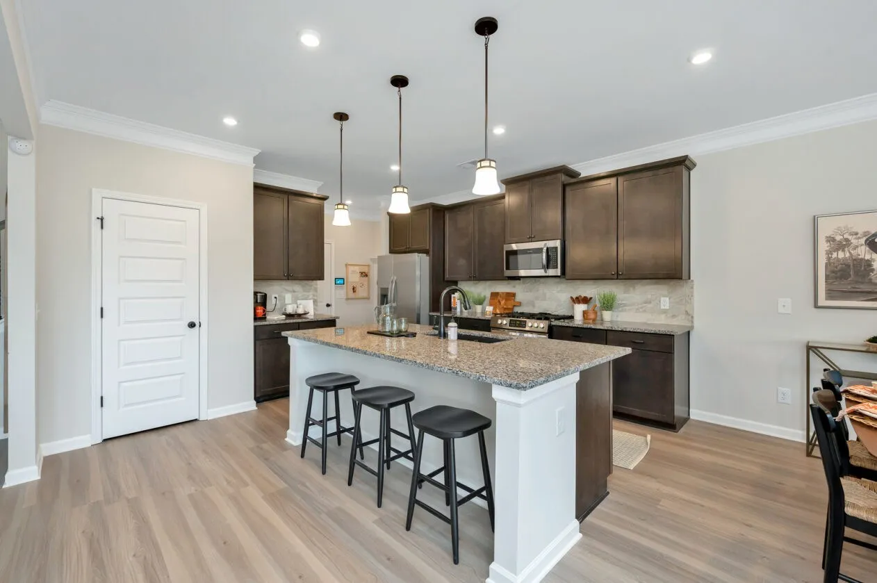 The Harrington plan at Morgan Meadows , by Smith Douglas Homes. Estimated Completion for Spring 2024. The Harrington is a delight with its massive second-floor owner’s suite privately tucked away on the same level as its three additional bedrooms. The first floor impresses with an open concept family room, breakfast nook and large center island, plus a separate Study!