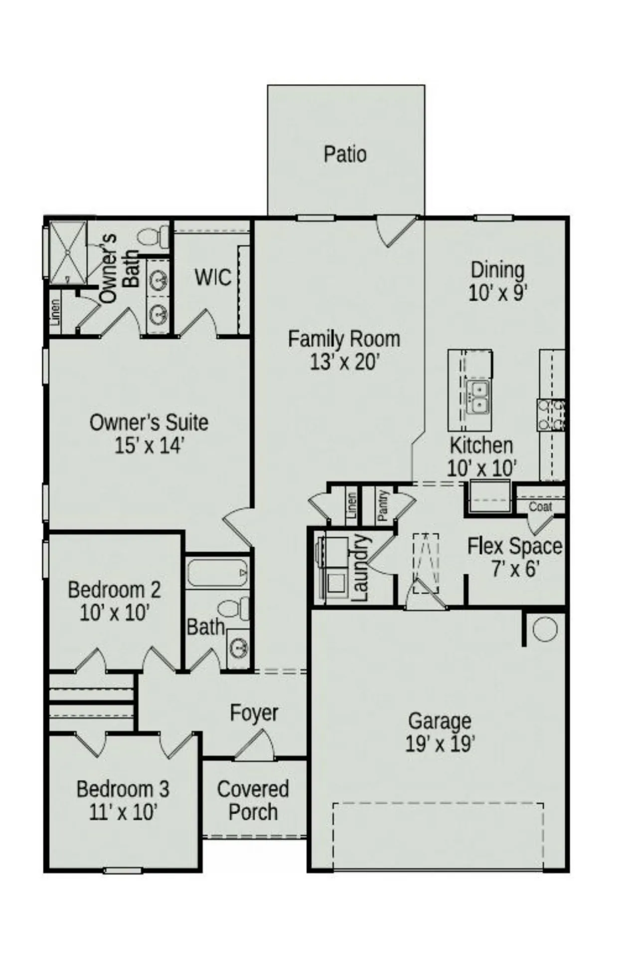 The Landen Plan by Smith Douglas Homes has great curb appeal and entry. This home makes very efficient use of every space, maximizing the livability of the home. Entering from the garage, the owner will find a wide functioning laundry, storage, flex room that offers a variety of uses and options to choose. The kitchen opens up to the family room and dining with a center island, great for food preparation. The owner’s suite is away from secondary bedrooms and includes a walk-in closet and bath.
