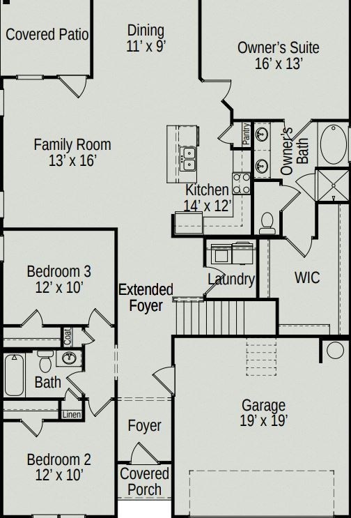The Langford at Morgan Meadows by Smith Douglas Homes. Flexible one-level living is available in the Langford plan by Smithdouglas , punctuated by a light-filled dining area with views of the backyard and access to a covered patio. An adjacent open kitchen with central island overlooks the spacious family room. The owner’s suite, tucked away at the back of the home, feels like a private sanctuary with its spa-like bath and sizable walk-in closet. A conveniently located and extra large laundry room enhances everyday living. Estimated completion date is March/April