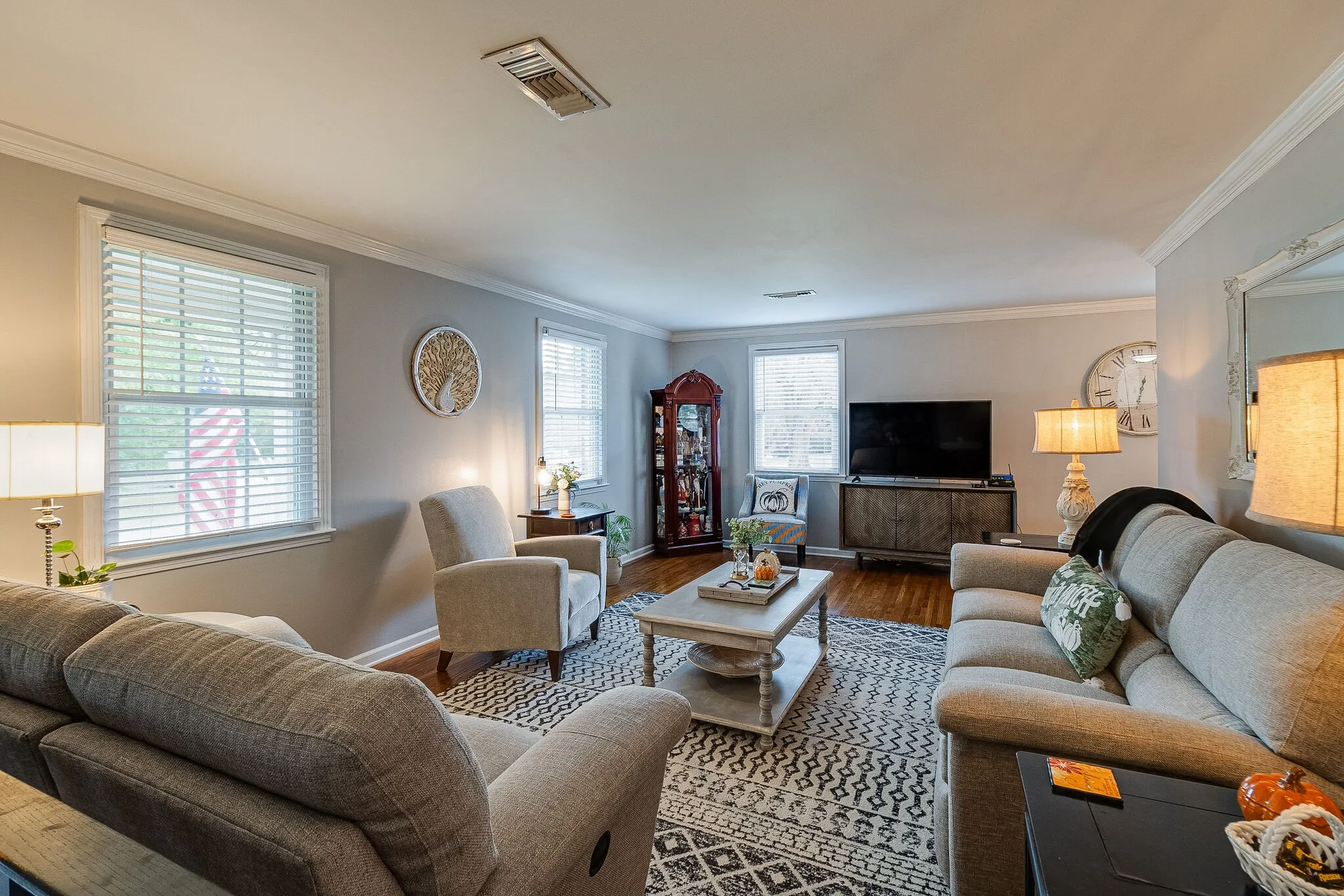 Welcome home! This pristinely kept home located on a lovely lot in the highly desired Sunnyside community has TONS to offer! The home features hardwood floors on the main level, an all white kitchen with appliances that remain, sunroom off the back of the home with new flooring, two driveway entrances allow for lots of parking space. Oversized two car garage with a unique pull through bay. The recently updated den is located downstairs and features brand new flooring, a cozy fireplace, a full bath and has the potential for a Master Down or a mother-in-law suite. The multiple covered patios and pool area provide a large space for entertaining guests or having barbecue’s. Kitchen appliances as well as the washer and dryer remain. Spacious game room with pool table. Two very nice storage sheds. Mostly fenced back yard. Home is within 3 miles of both Stoneybrook and Greymere golf courses!