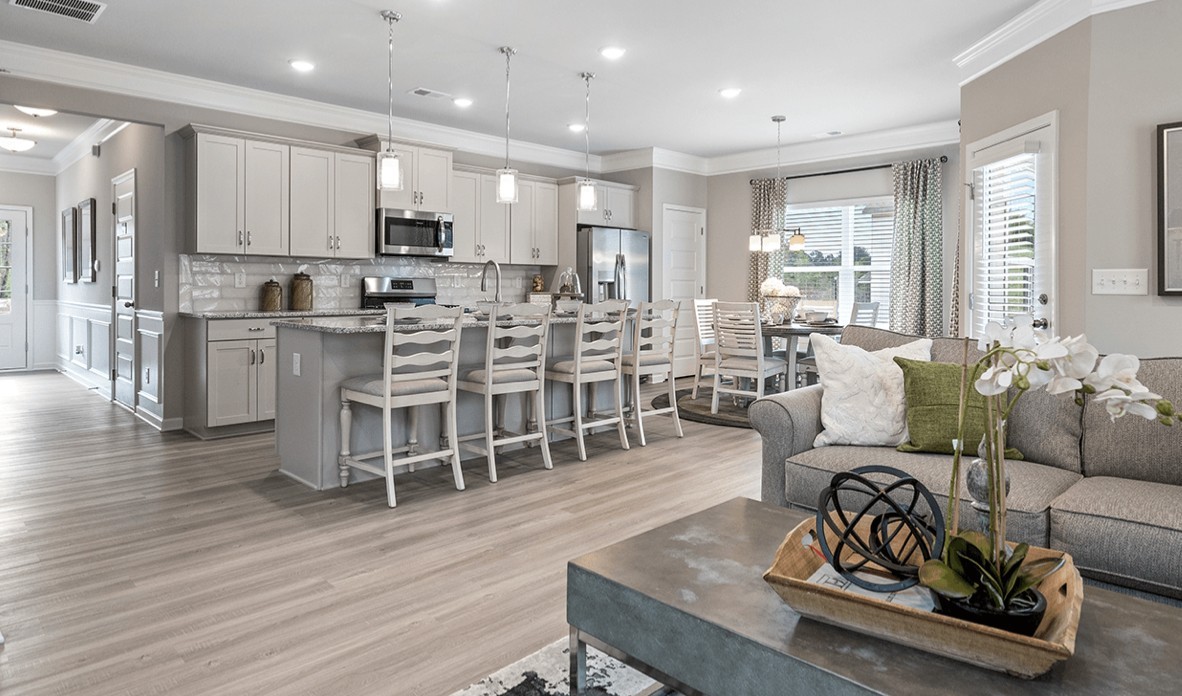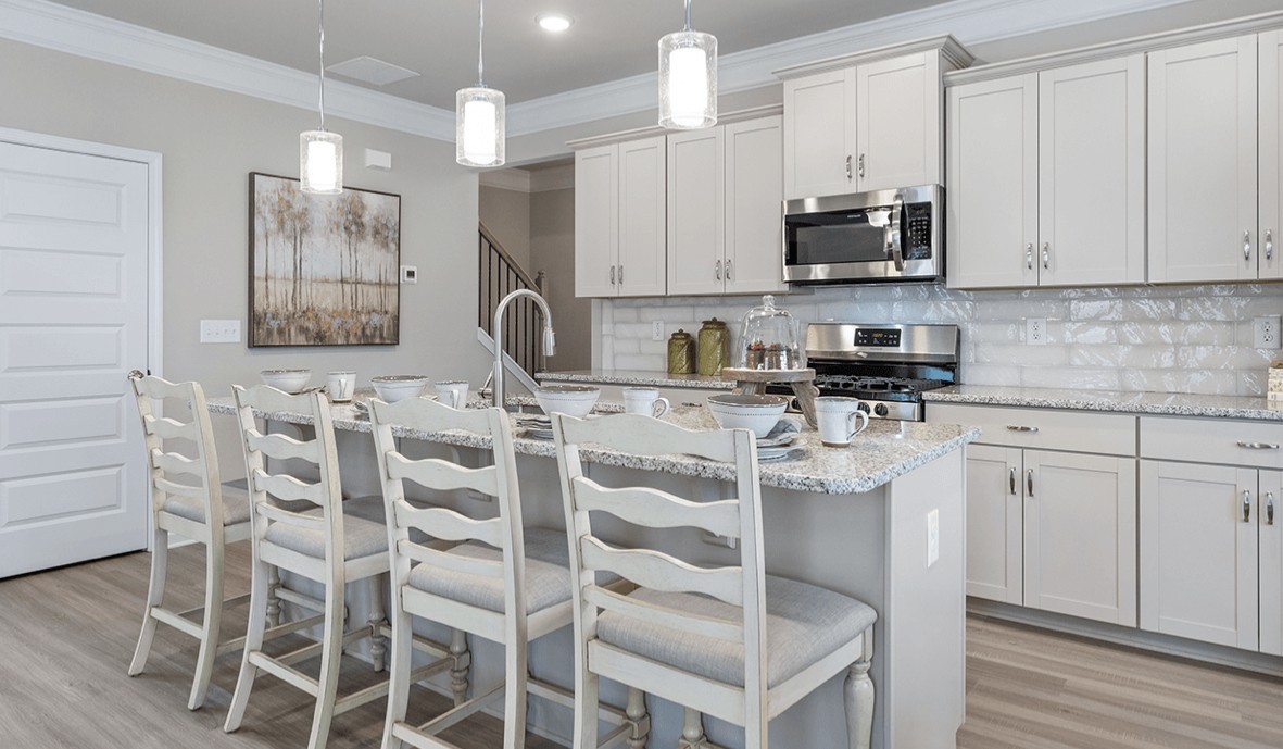 The Braselton II Plan at Morgan Meadows by Smith Douglas Homes. Outdoor lovers prefer the Braselton for its unique rear corner covered porch, directly accessible from a large eat-in kitchen overlooking the Great Room. On the second floor, a loft separates the private owner’s suite from two secondary bedrooms. May Estimated Completion DOWN TO THE FINAL OPPORTUNITIES!!!
