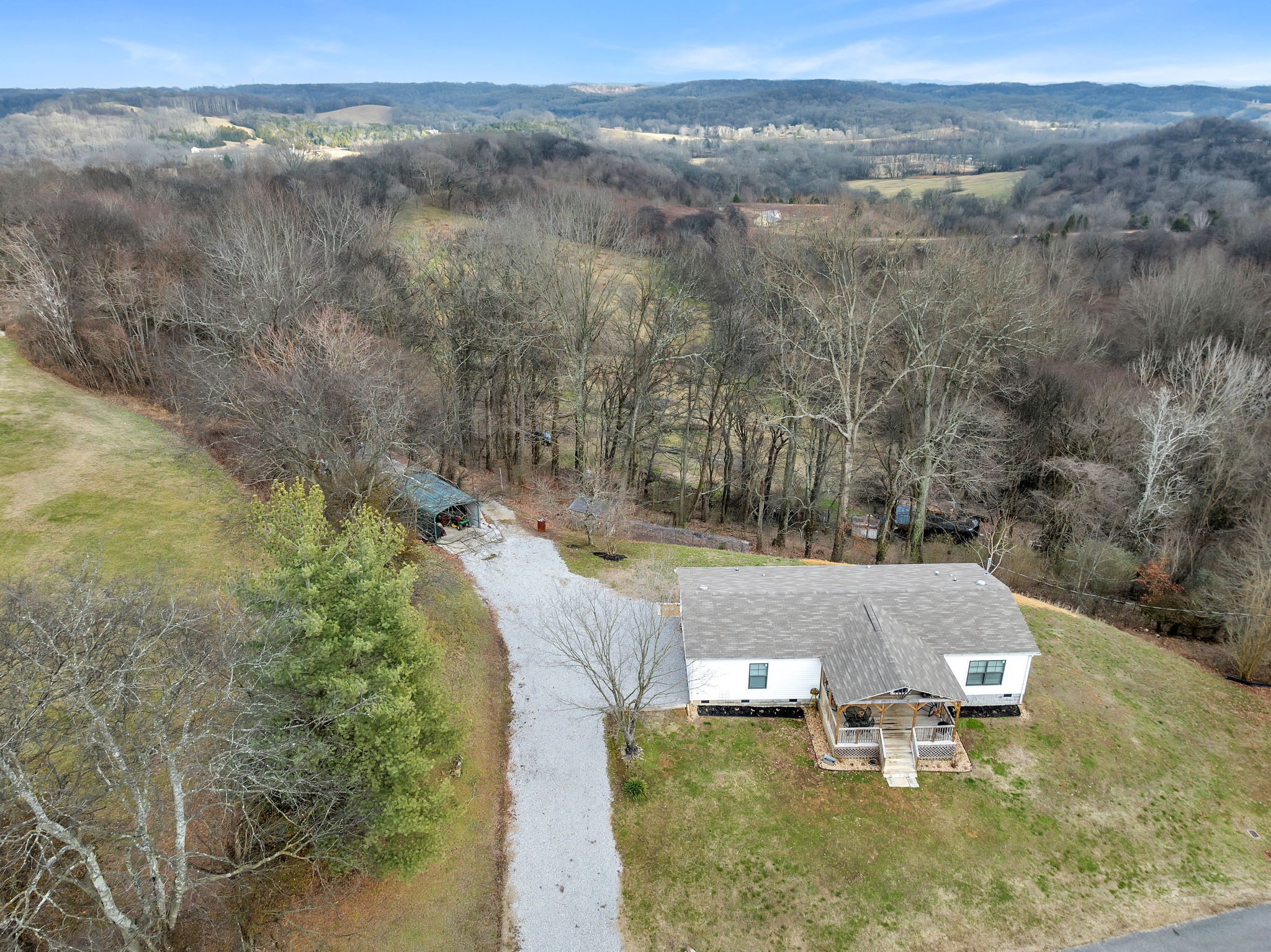 Welcome home to your private country mini-farm * This home is move-in ready * Immaculate inside and out * Lots of custom charm and character * Weathered wood-style flooring, barn-style door, apron sink, ship-lap accents, rustic ceiling beams, split bedrooms, 3 walk-in closets, double stacked island, recessed lights, combo walk-in pantry and laundry room with built-in shelving * Large master suite with garden soaking tub and walk-in shower * Fence runs along left/right/back side of property line & in the middle of lower acreage. Perk test has not been completed on lower acreage/ideal for future home site * This is a Clayton Modular Home (Aimee Model) * Gate entrance to the log road is between the house/carport. Located 8 minutes to downtown Columbia