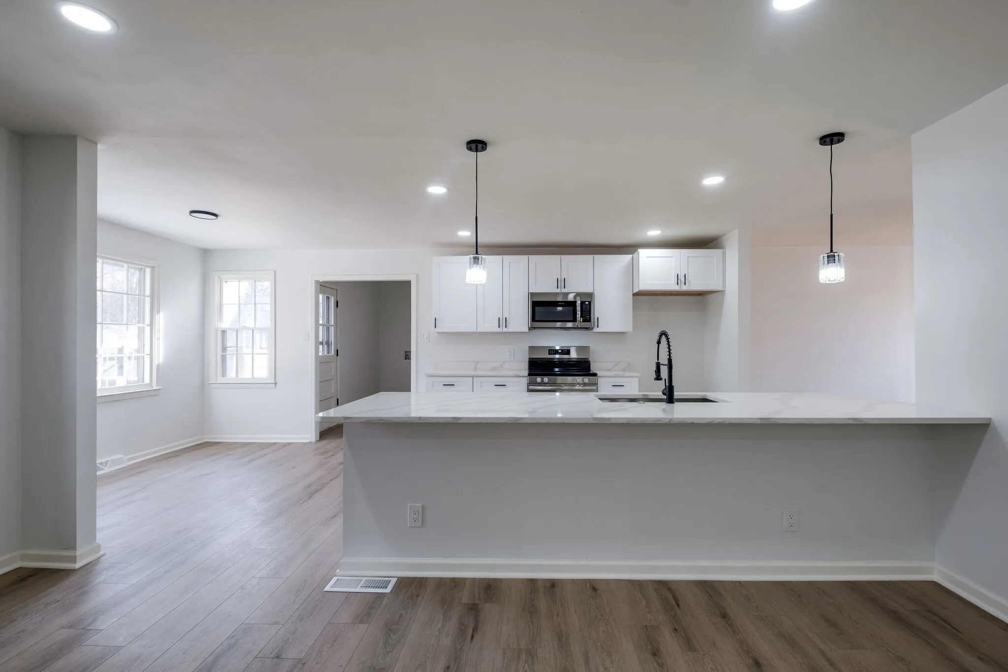This home has been beautifully remodeled and includes 3 bedrooms and 2.5 full bathrooms. It features new LVP floors, quartz countertops, and stainless-steel appliances. The entire home features brand-new neutral paint as well as modern finishes and fixtures.