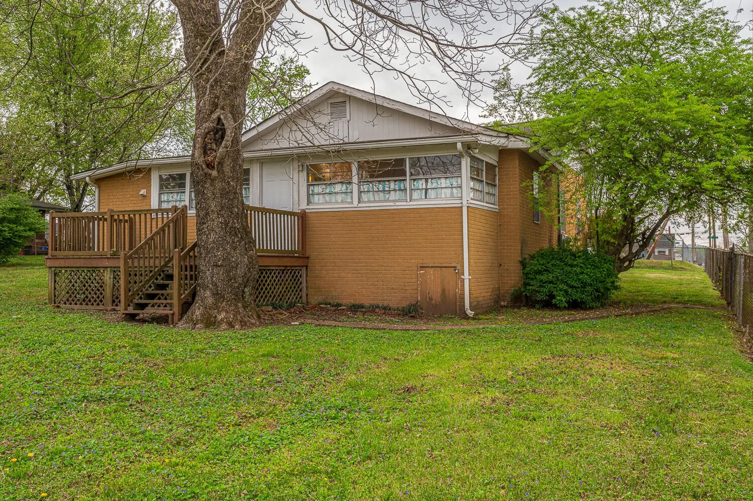 Welcome to 1201 E 35th Street in Chattanooga! This three bedroom 1.5 bathroom, one level home sits upon a corner lot and is just minutes to downtown. Interior features include a living room with hardwood floors, updated eat-in kitchen with granite counters and window over the sink, three bedrooms with hardwood floors, large full bathroom with linen closet, combined half bath and laundry area, and sunroom. Exterior features include a covered front porch, rear open deck and off street parking. Home is being sold in as-is condition. Adjacent vacant lot is available for purchase with buyer first right of refusal. Vacant lot (1205 E 35th St) is not owned by 1201 E 35th St owner. Fence runs the perimeter of both lots combined. Call or text today for your personal tour!
