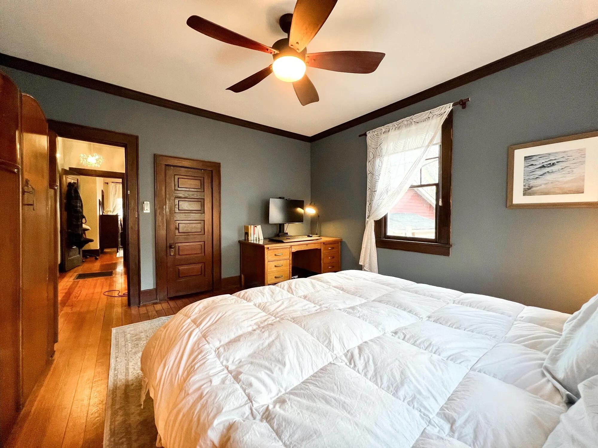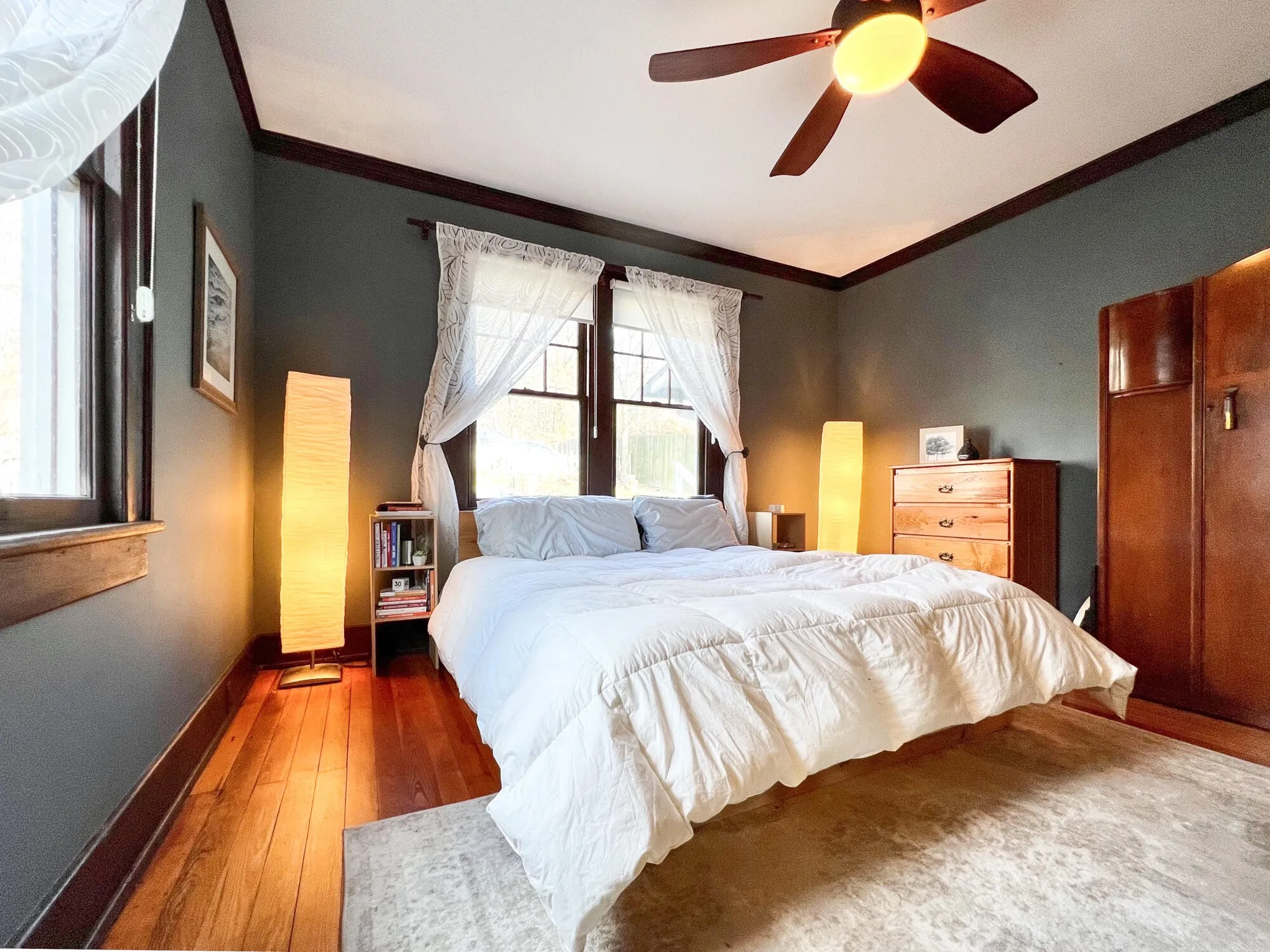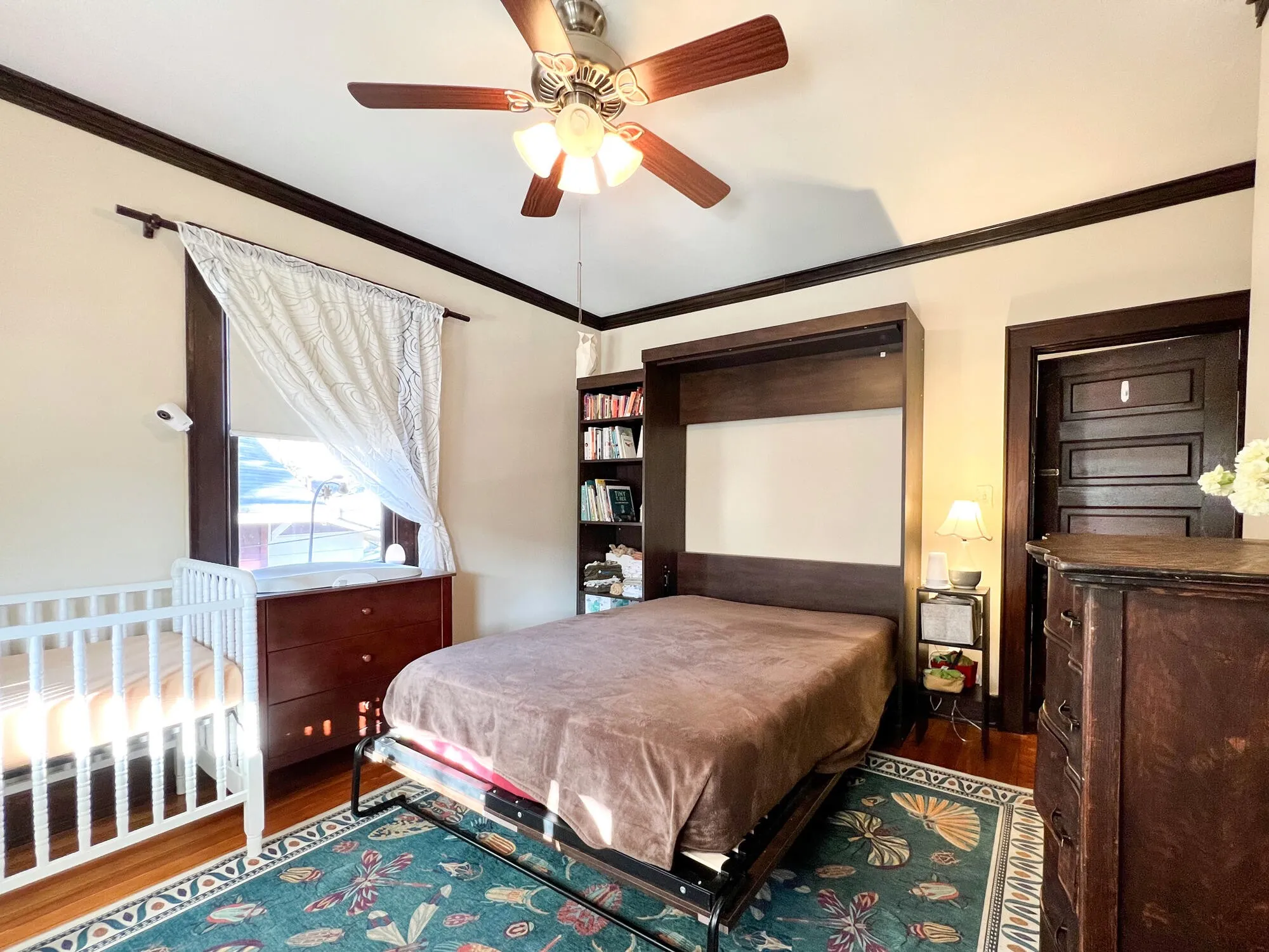 Welcome to 4612 Tennessee Avenue, a charming 2 bedroom, 1 bathroom historic bungalow nestled in the heart of historic St. Elmo, offering modern comforts with timeless appeal. Step into the inviting living room where a ventless gas log fireplace sets the scene for cozy evenings, accompanied by stunning views of Lookout Mountain through south and west-facing windows. The original refinished heart pine floors and stained dark wood trim contribute to the historic charm of the space, complemented by matching built-in bookshelves. Notably, one of these bookshelves features a unique ”Harry Potter” style trap door in the living room, adding both character and functionality, as it leads to the front bedroom. With 10-foot tall ceilings and original yet operable windows, the living spaces are bright and airy, complemented by updated light fixtures and fans throughout. As you step into the renovated kitchen completed in 2023, you’ll immediately notice the charming original built-ins, accompanied by modern amenities such as a gas range, elegant granite countertops, a spacious 36-inch single-basin sink, and ample room for any culinary enthusiast to craft delicious meals with ease. The front bedroom surprises with a queen Murphy bed, seamlessly blending with the trim, while the rear bedroom offers ample space for a king-sized bed and a working desk. The updated bathroom (2019) features a curbless walk-in shower, rain had shower, a soaking slipper tub, and a custom double vanity with modern lighting.