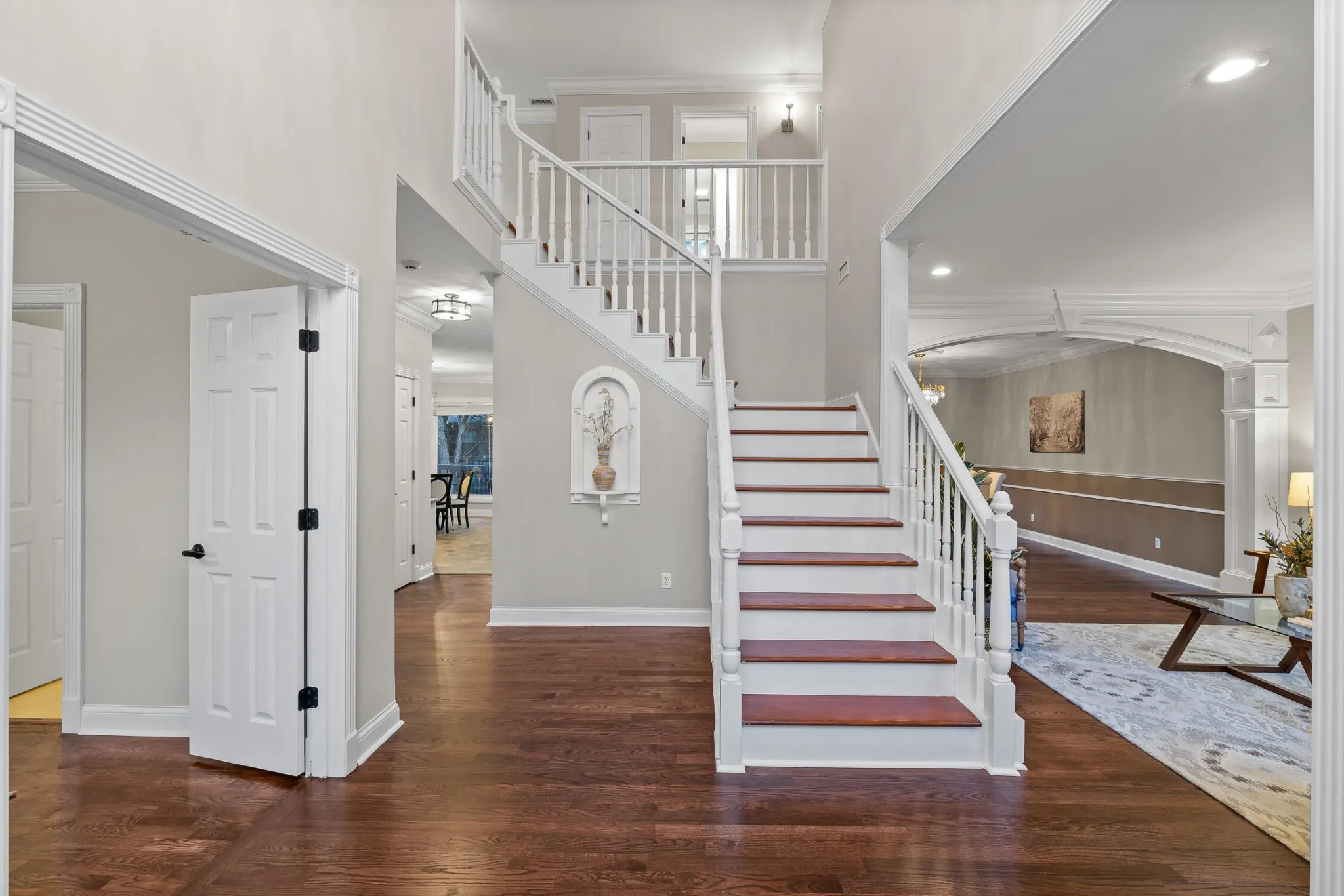 Your journey begins as you step into the 2-story foyer, an elegant introduction to a residence where every detail matters. The formal living room seamlessly blends with the dining room through an inviting arched doorway, creating an atmosphere of grace and charm. But that’s just the beginning of what this home has to offer.