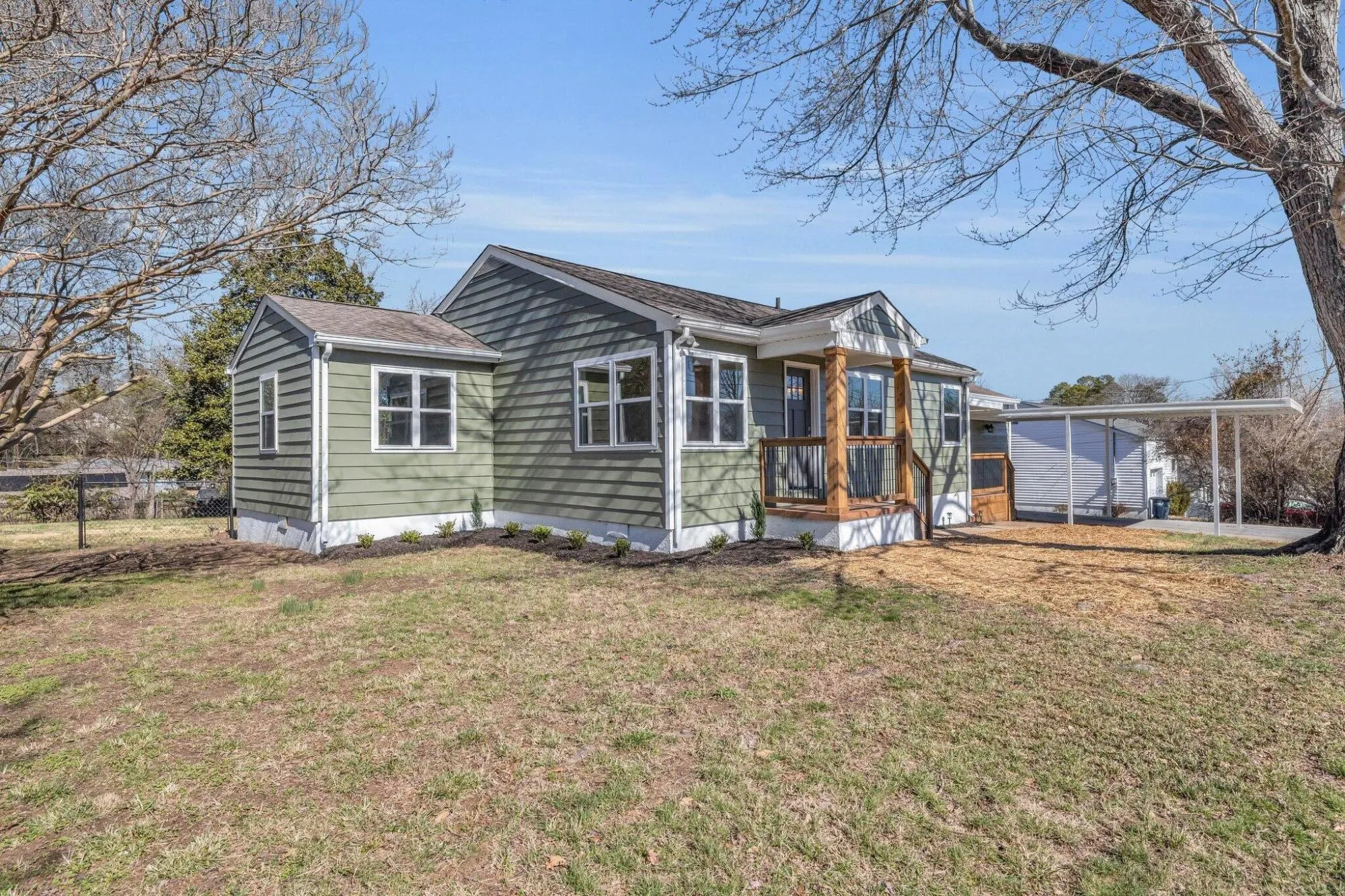 Beautifully renovated home in Mission Ridge. House is situated on a nice large lot with a partially fenced back yard. The seller has retained some of the features of the house like arched doorways and original inside door while adding modern conveniences. It is one story with 2 steps down to the master suite. This house is set up so you could have a renter on one side. The master suite and another room could be used as a separate area for a renter with it’s own entrance. The flooring is all new luxury vinyl flooring throughout the entire home. The all new kitchen features new kitchen cabinets with beautiful granite counter tops. The white subway tile back splash compliments the new cabinets. All new stainless steel appliances in the kitchen. Both bathrooms have been completely renovated with a gorgeous tile shower in the master suite and a tub shower combo in the hallway. All new lighting fixtures and the master has a new ceiling fan. A cedar closet was retained in the renovation. The extra width driveway allows for a single carport and more room to accommodate another vehicle. There is a shed in the back yard for storage. Close to the TN/GA state line, easy commute to downtown Chattanooga. There is easy access to shopping and nearby restaurants and attractions.
