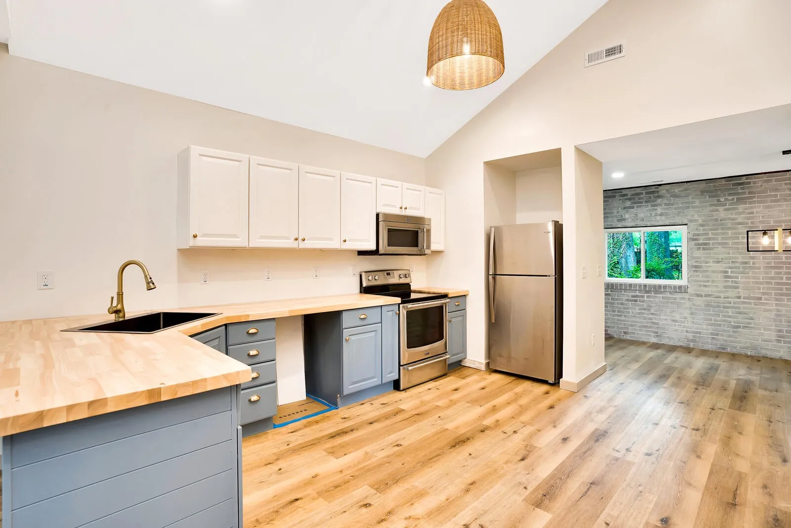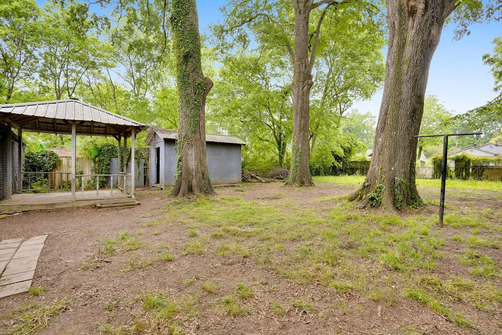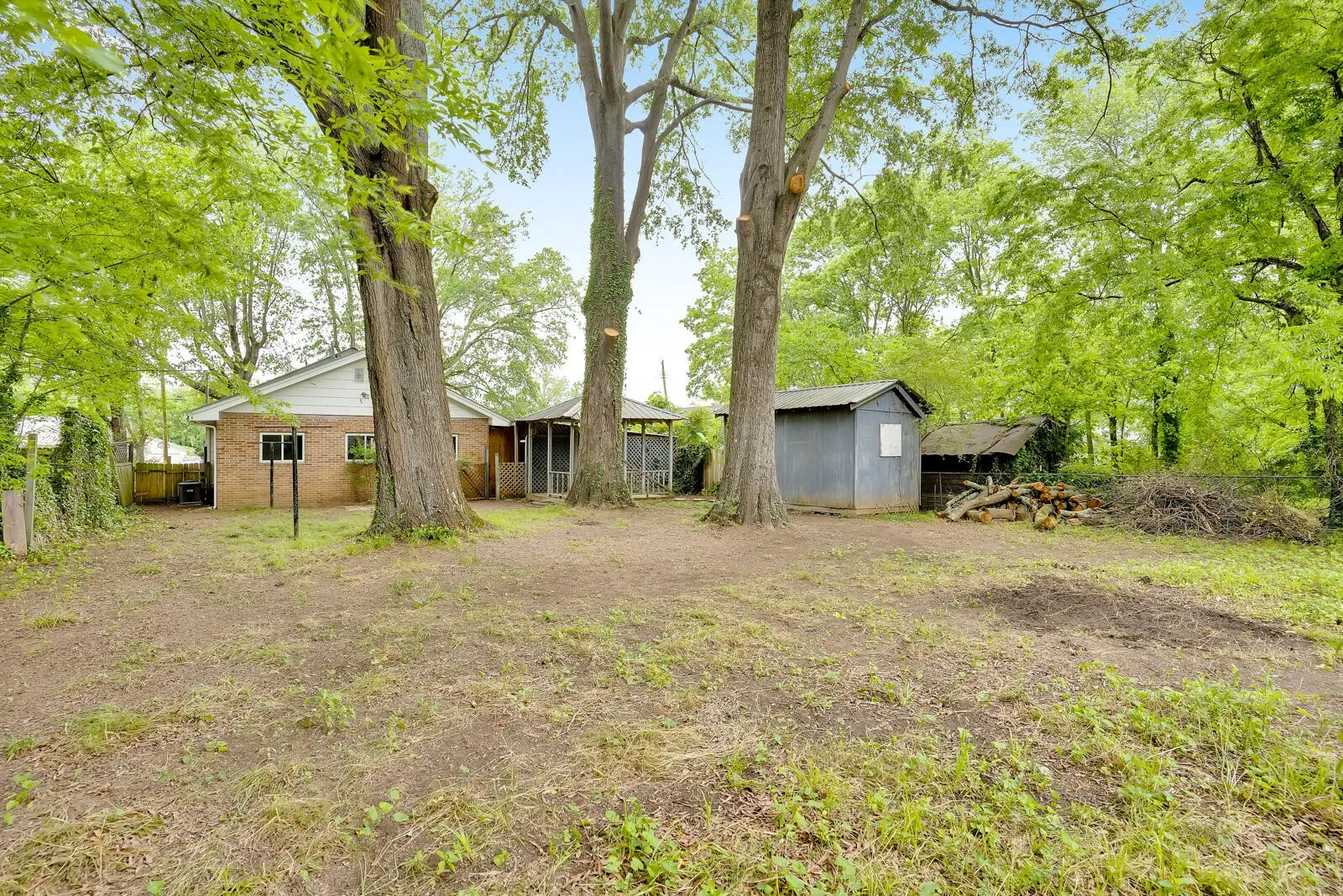 This beautiful three bedroom and two bath home sits on lovely property. The yard is completely fenced in the back and features a gazebo, storage shed and grand old trees. The house has a new front porch, new HVAC duct work and vents, new floors, new walls, new electric, new plumbing, and newly remodeled kitchen and bathes. Seller providing home warranty. Restored 1940’s windows in front rooms and brand new windows in the remainder of the home. Original brick feature walls exposed and all new lighting installed.