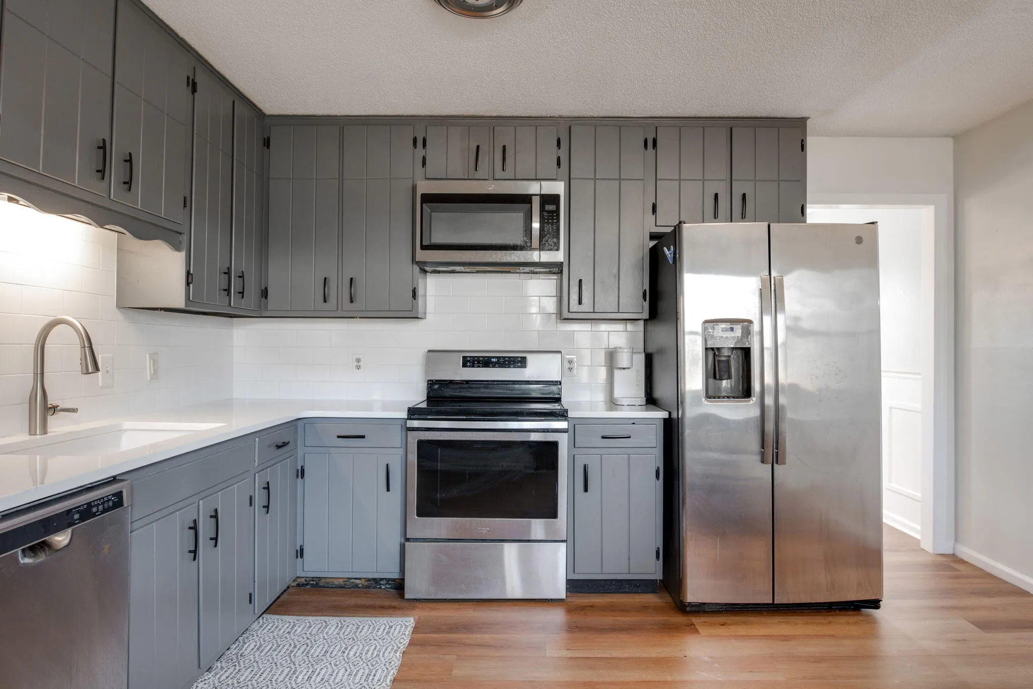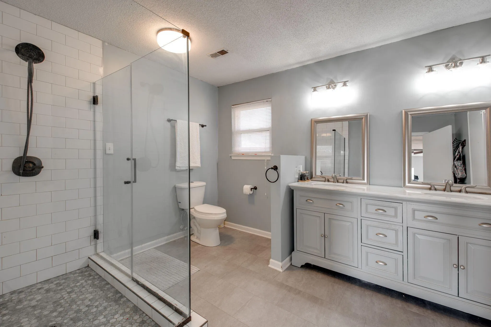 Upstairs the large master suite is a true oasis, boasting a large double vanity and brand new tile walk-in shower. Additionally, there are three more spacious bedrooms that share a full bathroom.