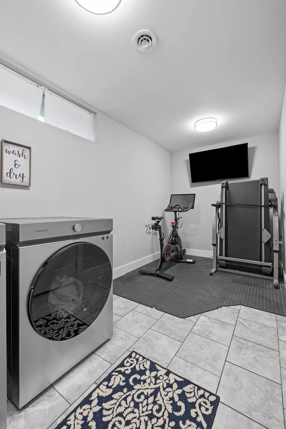 There is an additional 208 sq ft of finished space in the garage in the form of a laundry/ work out room, and an oversized climate controlled storage room!