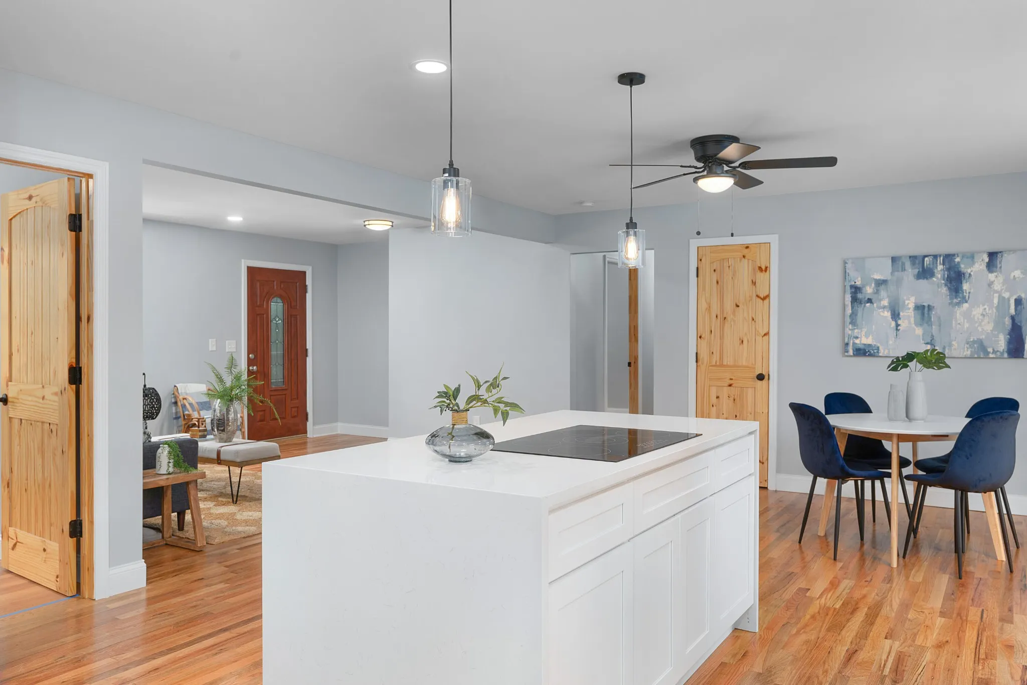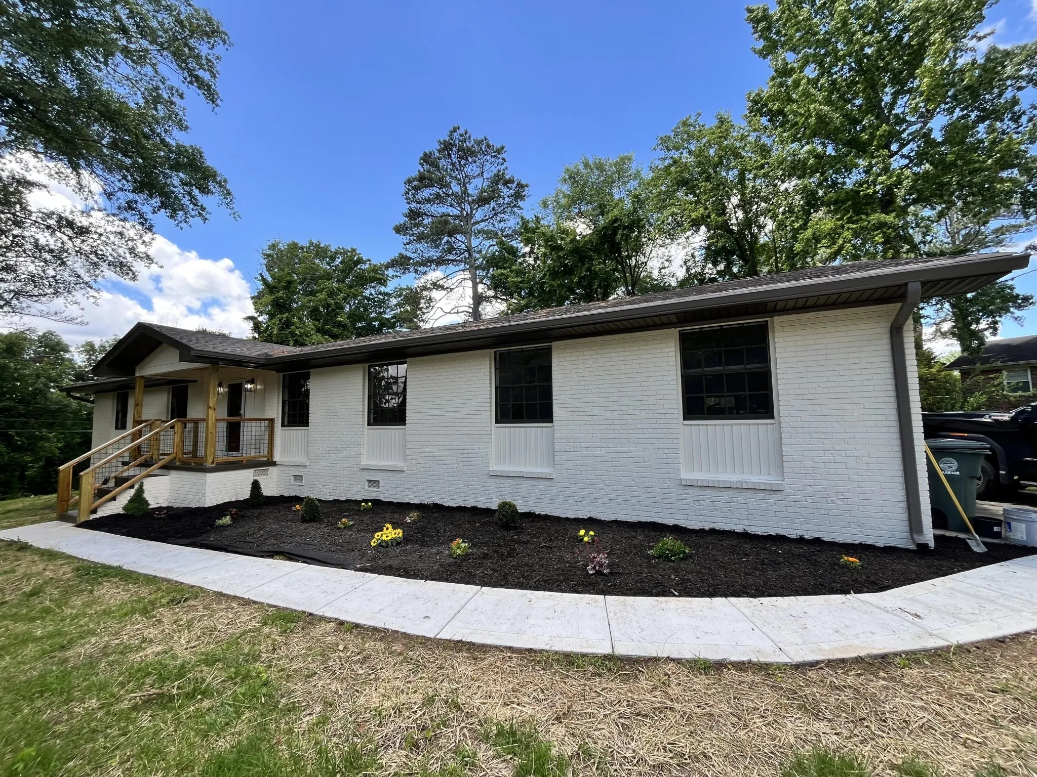 Beautifully updated, all brick, one level home on a corner lot in the heart of East Brainerd close to schools, parks, medical facilities and the shopping and restaurants of the Hamilton Place area. Freshly painted inside and out with new front and back covered decks, this 4 bedroom, 2 bath home now boasts an open floor plan, a gorgeous new kitchen, new vanities, new lighting, new cabinetry and countertops, hardwood and LVP flooring, new roof, a double garage with extra storage, a fenced back yard and more. The kitchen is now open to the living and dining and features a center island with pendant lighting, quartz countertops, soft-close cabinetry, stainless KitchenAid appliances, including convection double wall ovens, a pantry, and a laundry area by the garage. The dining area has a sliding glass door to the rear deck for easy indoor to outdoor entertaining. The primary bedroom is down the hall and has a private bath with a shower, while two additional bedrooms share the use of the full hall bath that has a dual quart vanity and a tub/shower combo with tile surround. The 4th bedroom is off the kitchen and living room on the front of the house and would also make a great office, den, or playroom. Simply a fantastic opportunity for the buyer seeking one-level living with a nice yard in a convenient location, so please call for more information and to schedule your private showing today. Information is deemed reliable but not guaranteed. Buyer to verify any and all information they deem important.